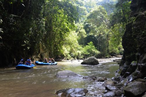 Pour les plus sportifs, une des activités très populaires à Ubud consiste à faire du rafting sur la Ayung River. On descend la rivière avec un guide (qui gère l’embarcation) dans la forêt tropicale… et on s’arrête même pour se rafraîchir à une petite chute d’eau ! L’activité était plus facile que ce à quoi je m’attendais, j’ai adoré l’expérience et je vous la recommande donc même si vous n’avez encore jamais fait ce genre d’activité.