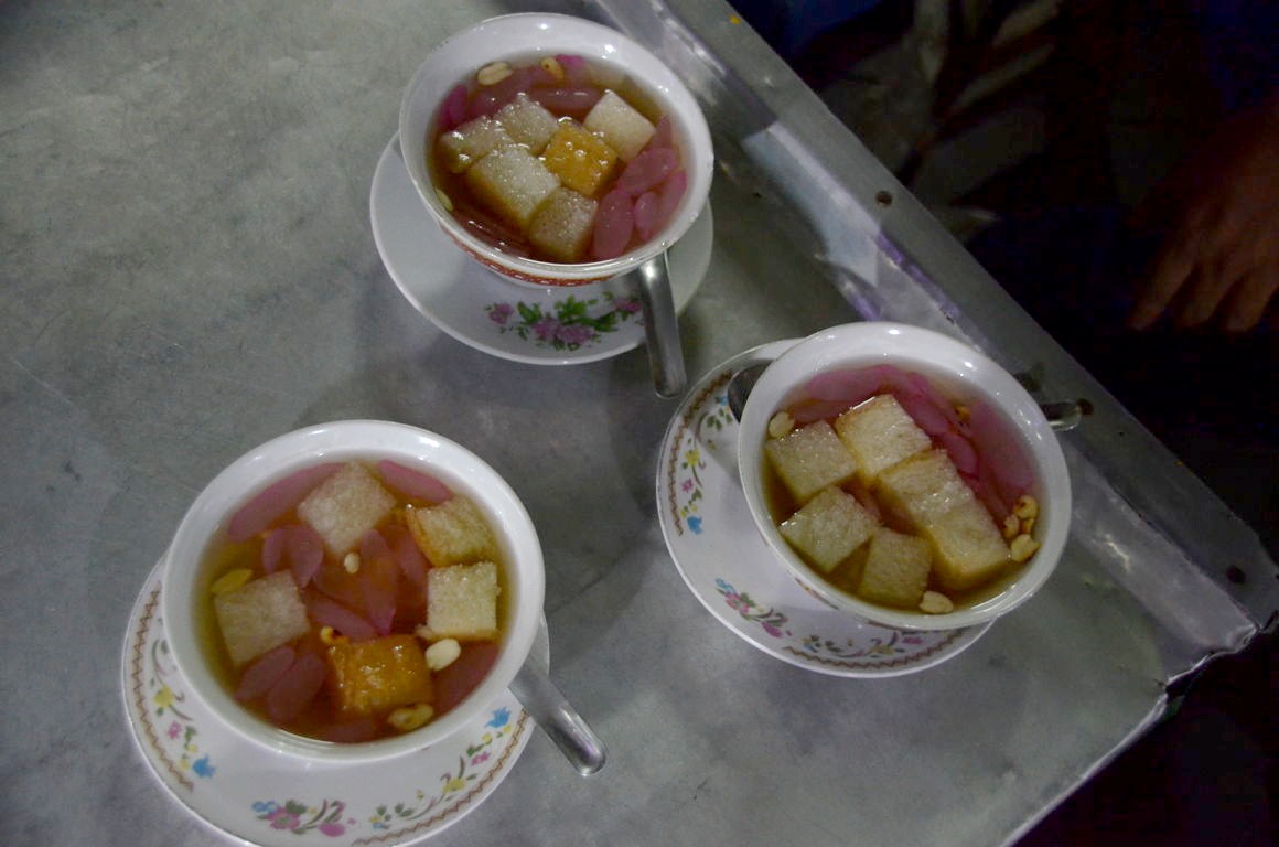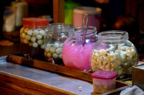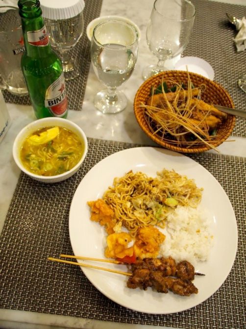 En dessert, la star semble être le Sekoteng, une boisson chaude au gingembre – typique de l’île de Java – agrémentée de cacahuètes, de morceaux de pain de mie et d’une sorte de haricot. Impossible de ne pas goûter moi-aussi ! Verdict : on ne dirait peut-être pas à première vue, mais c’est vraiment très bon, et le goût du gingembre reste encore assez doux, contrairement à ce que j’aurais pensé. Bref, à tester !