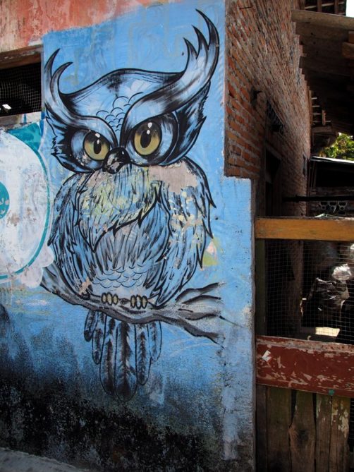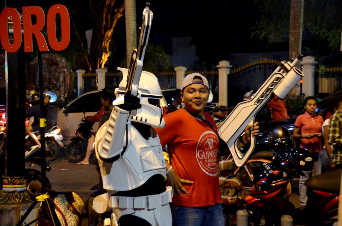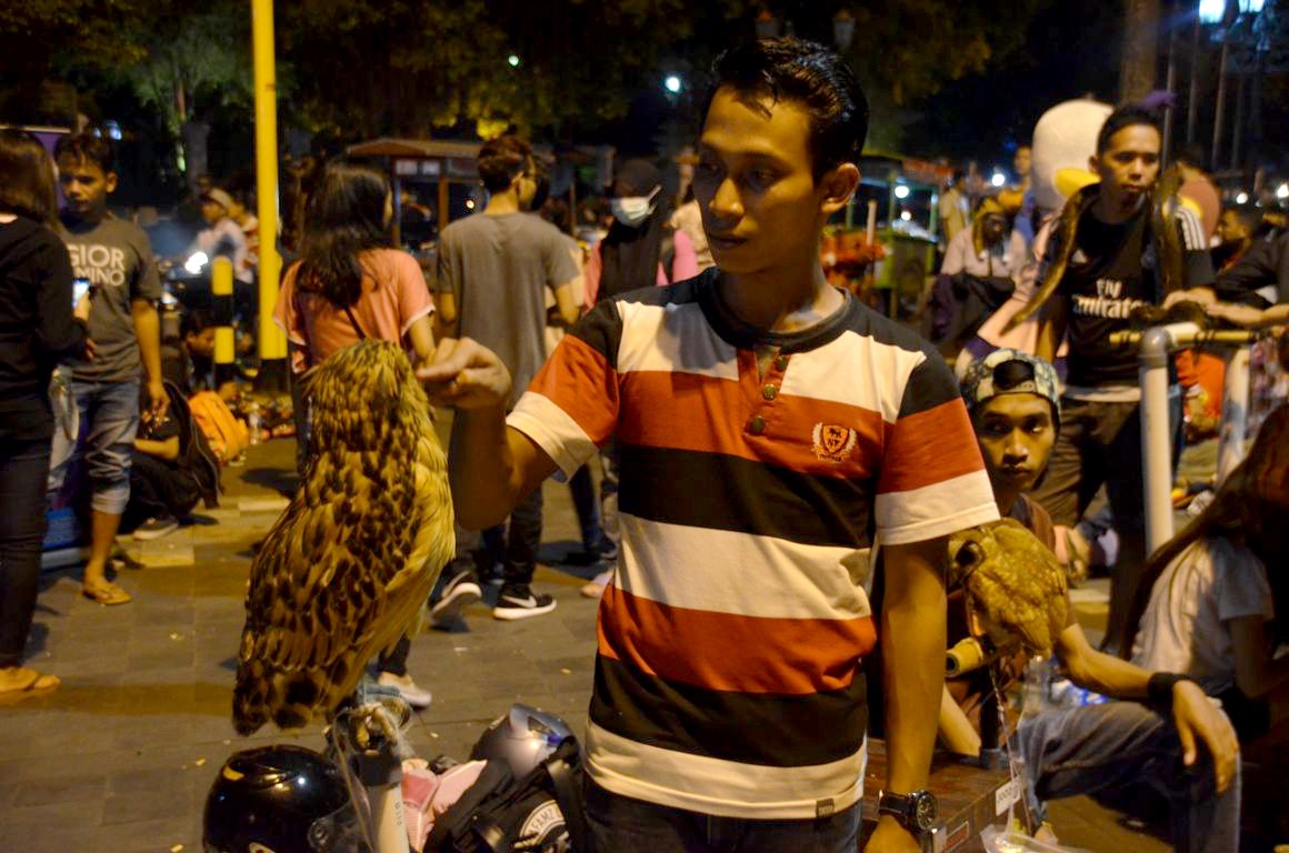 Des hommes déguisés en personnages de Star Wars, de Disney, de Marvel et autres, posent avec les touristes indonésiens qui ont l’air de se croire à Disneyland. Il y a aussi – malheureusement – beaucoup d’animaux comme des serpents ou encore… des chouettes. Oui, des chouettes en pleine rue en Indonésie. J’ai quand même eu un peu mal au cœur de voir ces pauvres petites bêtes attachées comme ça. Mais bon, j’ai déjà vu bien pire…