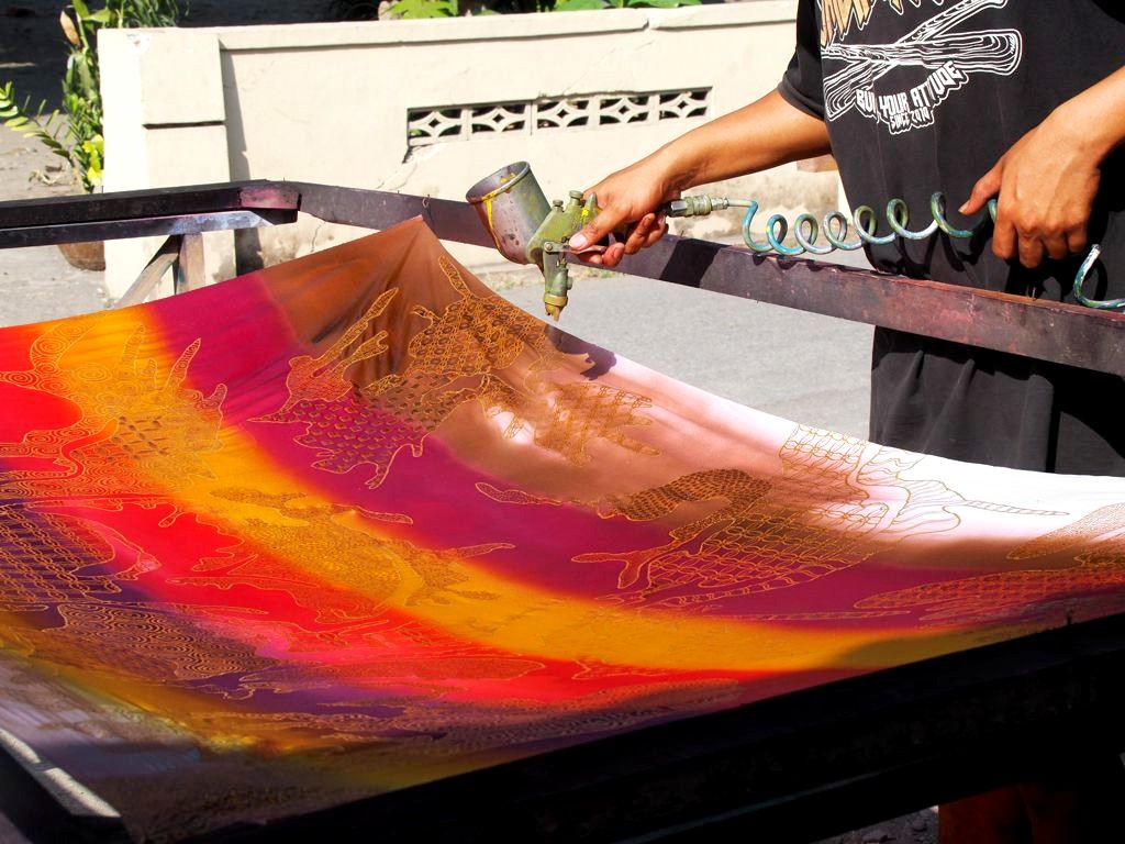 Lors de mon deuxième voyage, on nous avait organisé un atelier de Batik à Bantul. L’expérience était sympa car ça m’a enfin permis d’apprendre les différentes étapes de fabrication de ce tissu typique d’Indonésie. D’abord on applique la cire, puis on met la couleur (en trempant dans la couleur ou avec un spray pour la méthode moderne), et après il ne reste plus qu’à enlever la cire (la zone restera blanche), et à répéter l’opération plusieurs fois pour les motifs plus recherchés !