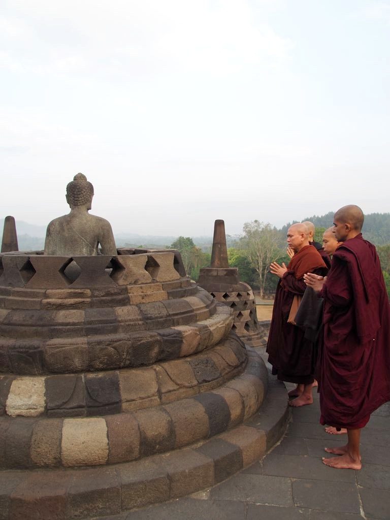 La première fois, j’ai visité Borobudur au coucher du soleil et la deuxième fois, au lever du soleil. La garantie d’avoir un spectacle époustouflant n’est jamais là dans les deux cas car le ciel est très souvent couvert dans cette région assez humide mais c’est l’expérience spirituelle qui compte pour moi le plus. Voir l’astre se lever ou se coucher dans ce cadre unique est incroyable en soi.