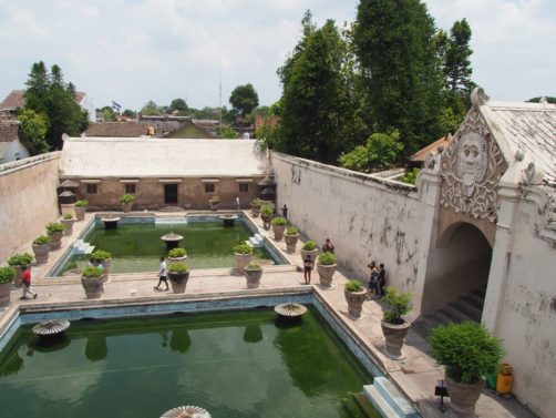 Le palais est l’ancienne résidence de plaisance du roi/sultan de Yogya. On l’appelle le Water Palace a cause de ses nombreuses piscines (qui n’en sont malheureusement plus aujourd’hui).