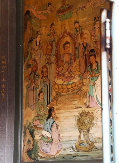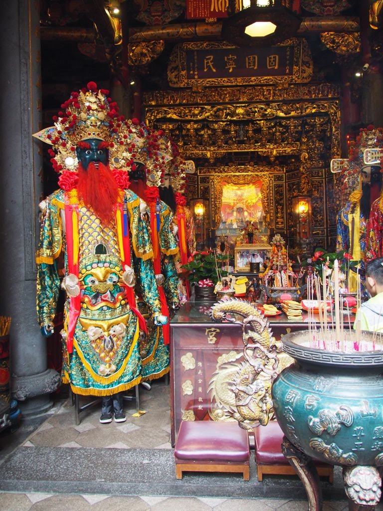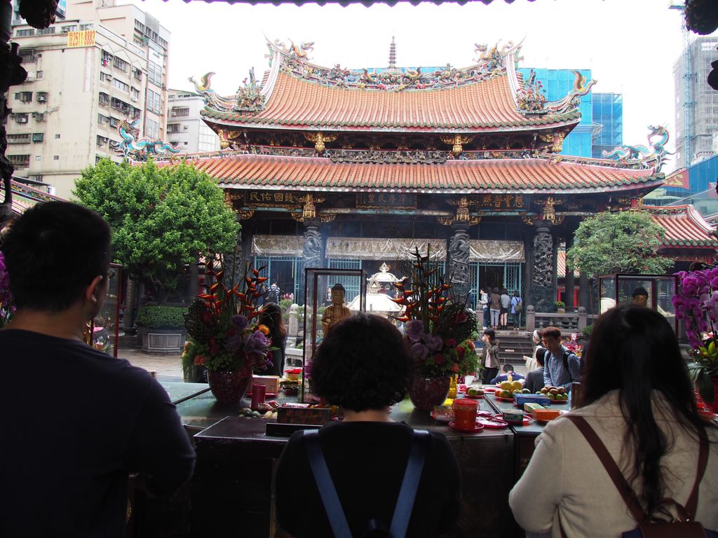 Nous avons commencé la visite d’un des principaux temples de la ville, temple de Longshang, un temple bouddhiste fondé en 1738 par les immigrés Han. Le matin, on peut observer les locaux prier.
