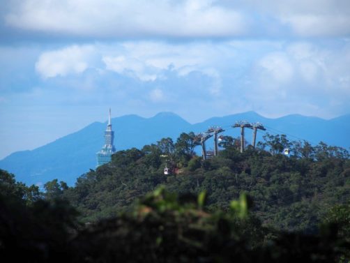 Dans tous les cas, les vues durant le trajet, qui dure environs 30 minutes, sont vraiment sympa ! Et une fois en haut on a une belle vue sur les champs de thé, sur la vallée de la Zhinan River et sur la ville de Taipei en contre-bas.