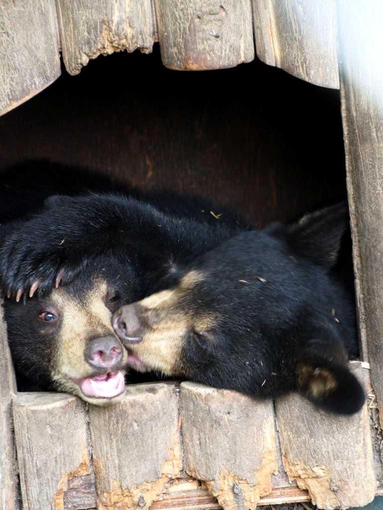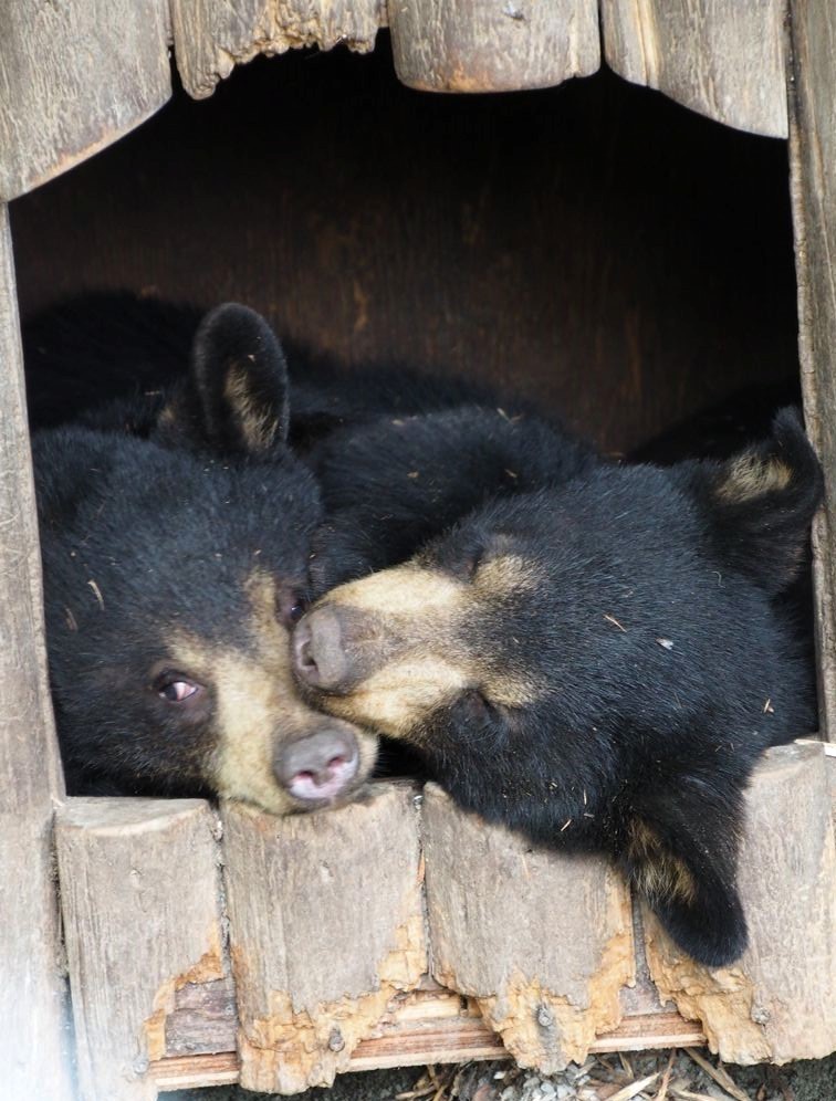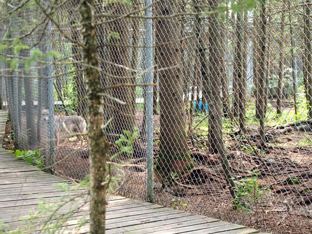 Durant la visite, Marie-Frédérique a beaucoup insisté sur le besoin de limiter le plus possible le contact avec les humains pour les résidents temporaires. Plus ils s’habituent à l’homme, plus c’est difficile de les relâcher. Sauf pour les petits oursons orphelins, qui sont presque toujours relâchés car l’hibernation leur permet de « se remettre à zéro » au niveau de l’imprégnation à l’homme. Ceux que nous avons vu au refuge retrouveront donc la nature au printemps prochain, après avoir passé l’hiver bien sous la protection du refuge.