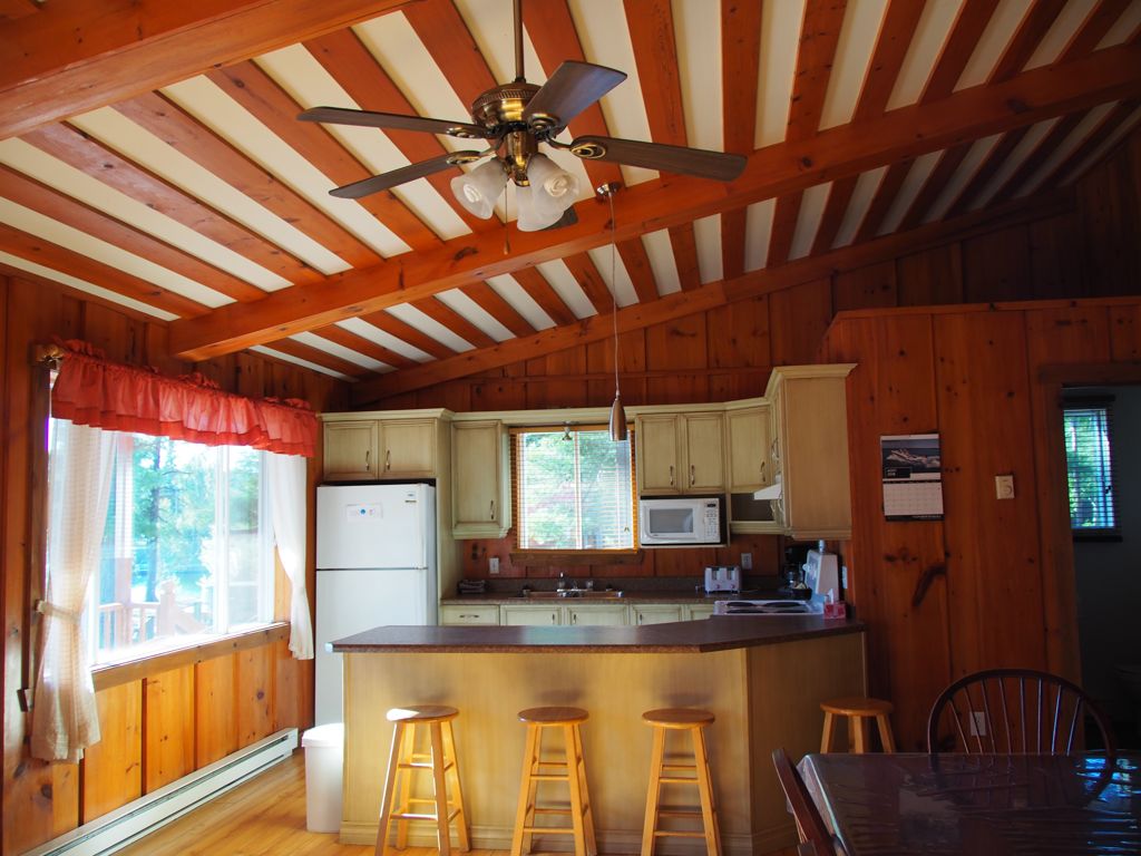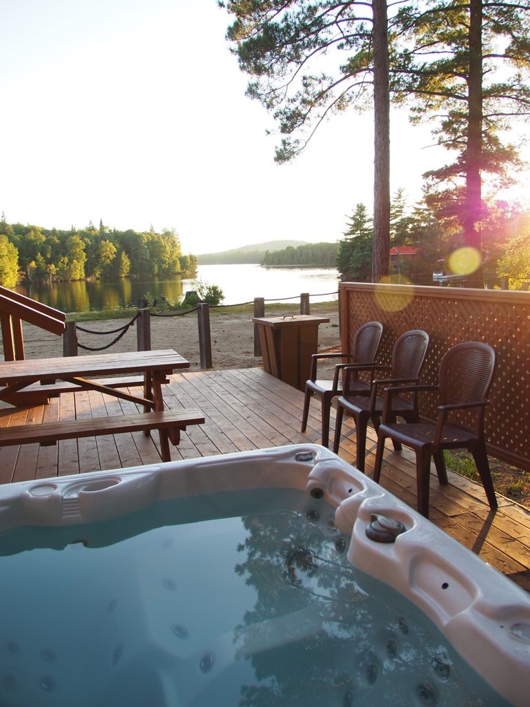 Comme à La Bannik, le Rabaska Lodge combine un côté camping et des hébergements en chalet tout confort. Nous avons logé dans énorme chalet 4 chambres parfait pour les familles (mais il y en a aussi des plus petits, je vous rassure !), avec un grand jacuzzi et une vue imprenable sur le Réservoir Baskatong dès le réveil… Nous avions même notre propre petite plage et ponton !