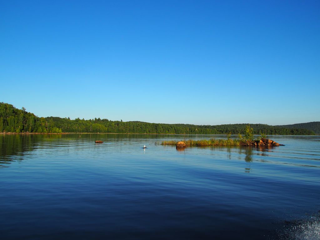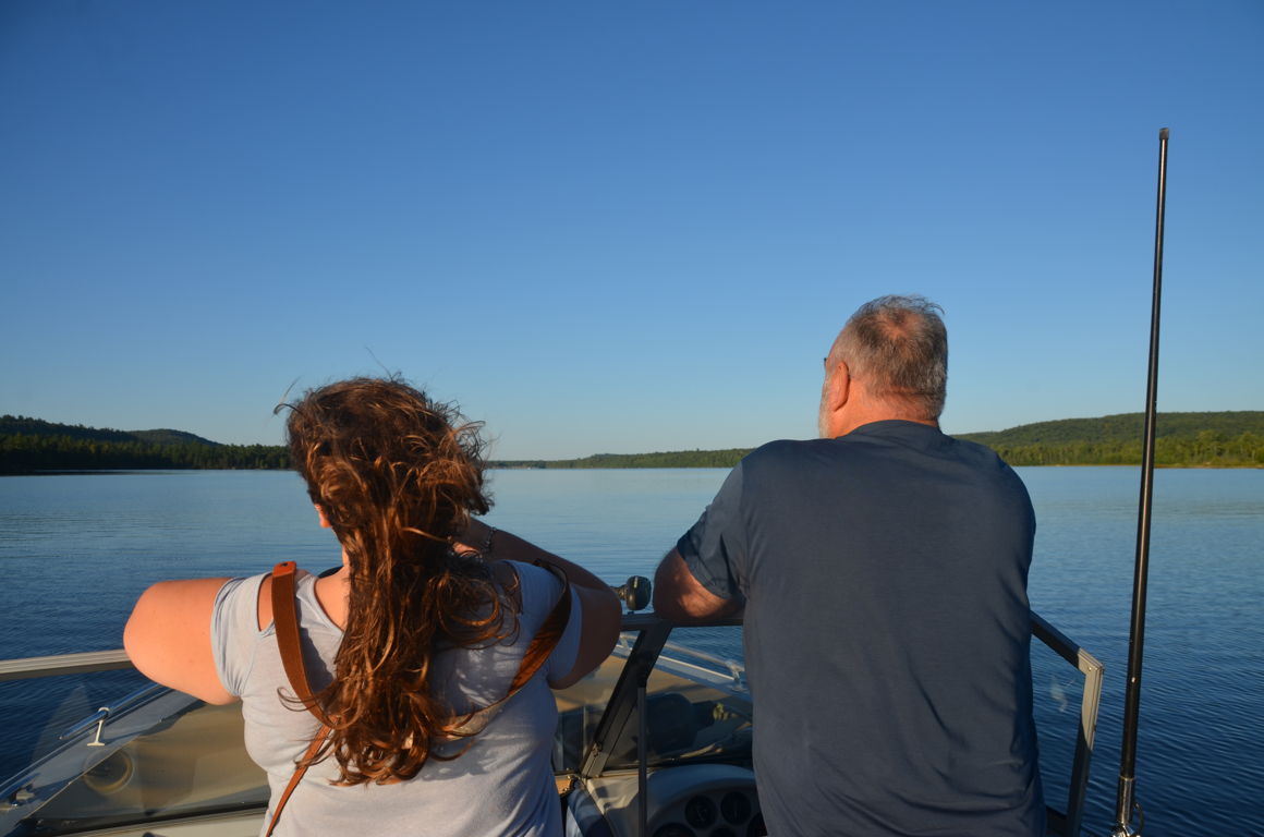 Aujourd’hui, c’est devenu le paradis des pêcheurs. Le Réservoir Baskatong, c’est 2800 kilomètres de berges sablonneuses et 160 îles… Et je peux vous dire que parcourir le lac en petit bateau moteur permet vite de se rendre compte de son immensité. Avec la lumière dorée de fin de journée, les cheveux au vent, le moment fut magique.