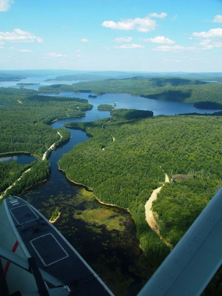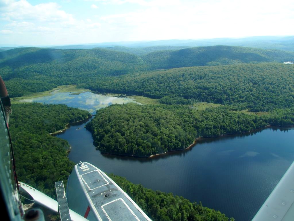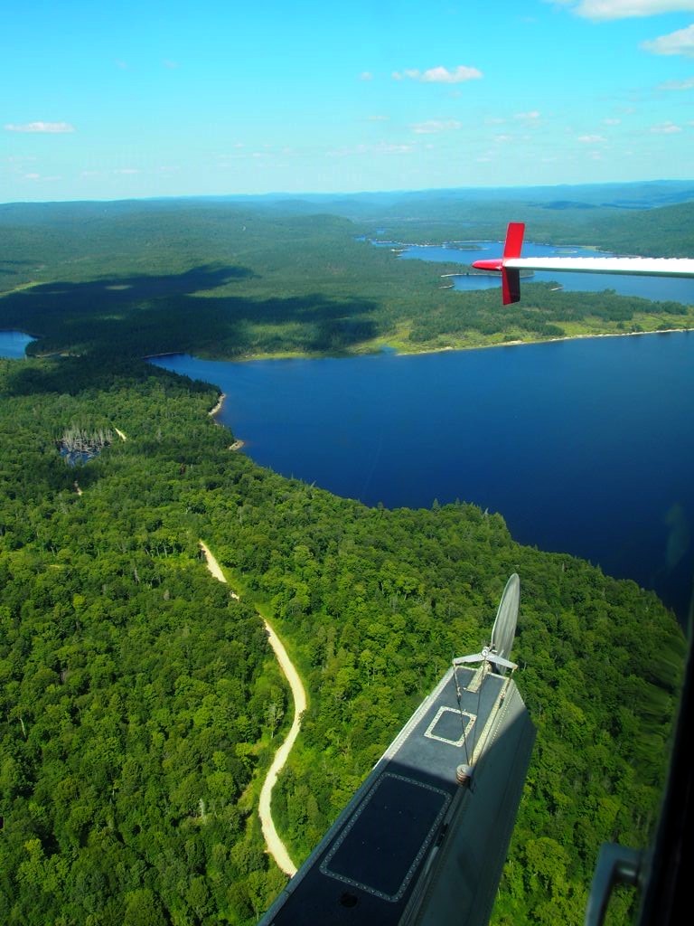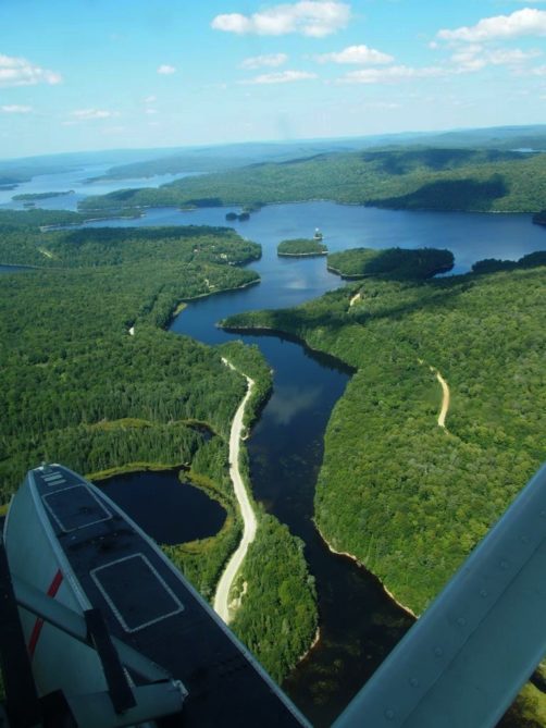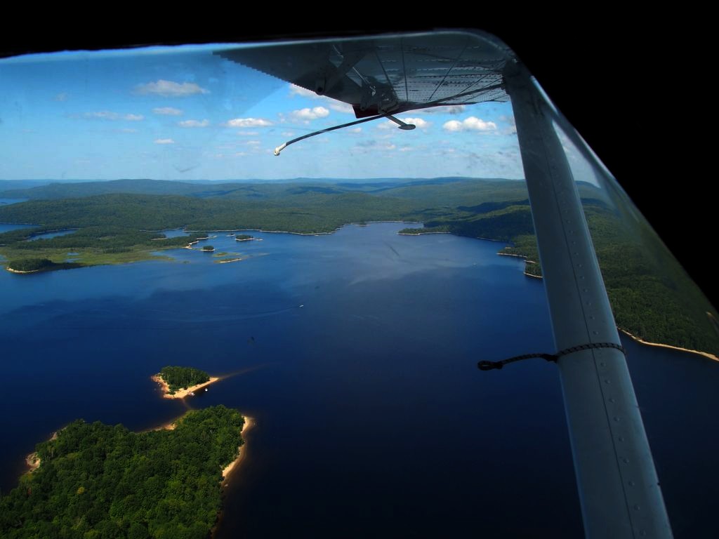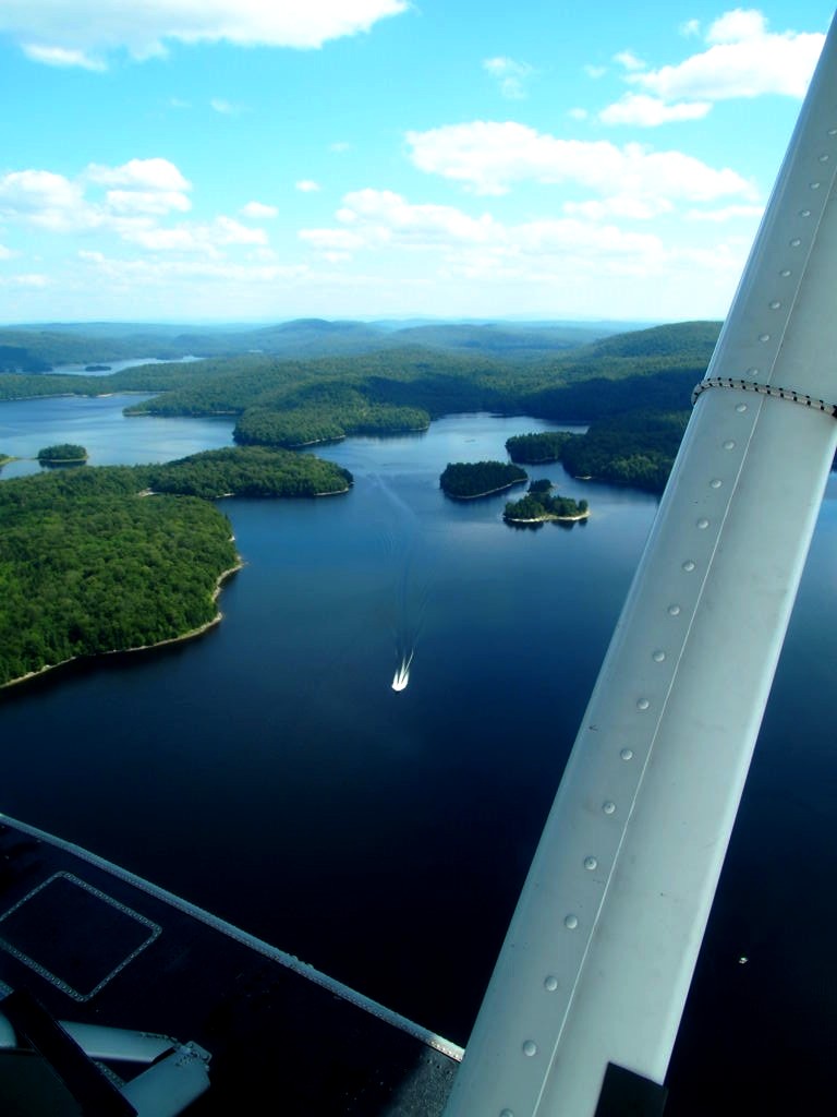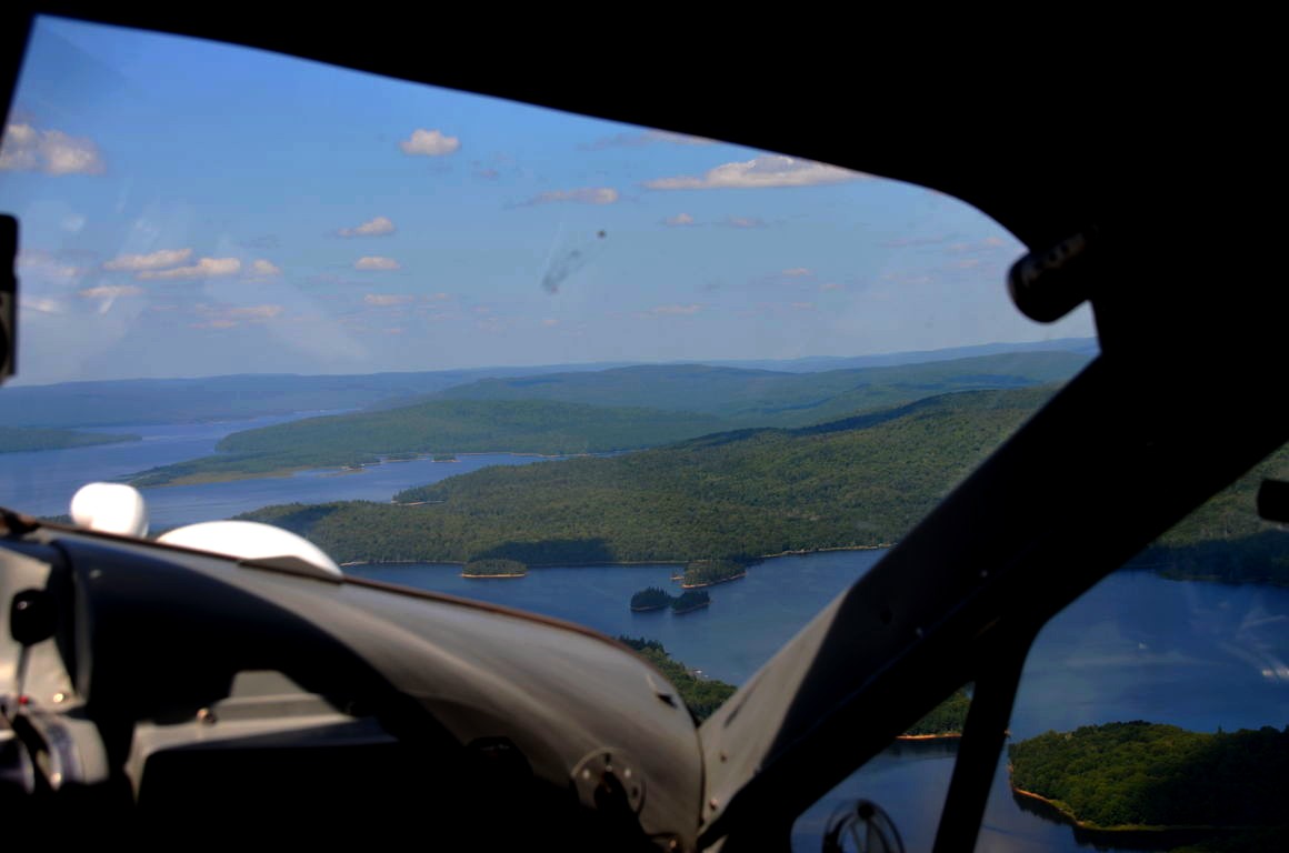 En plus, comme on vole assez bas, on en prend vraiment plein les yeux. Nous avons survolé l’ensemble du Réservoir Kiamika, et avec le grand soleil qu’il faisait ce jour-là, ce fut d’une beauté suprême. Nous avons survolé pendant 20 minutes des immenses forêts, et cet énorme lac parsemé de petites îles. C’est un des plus beaux paysages que j’ai pu voir !
