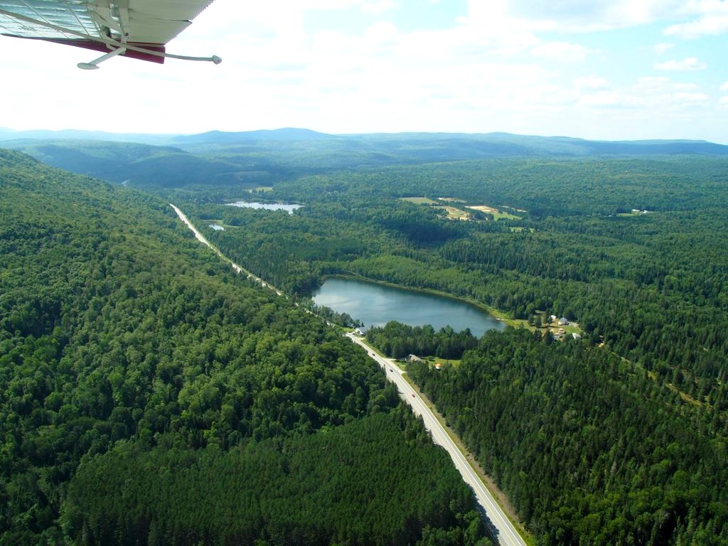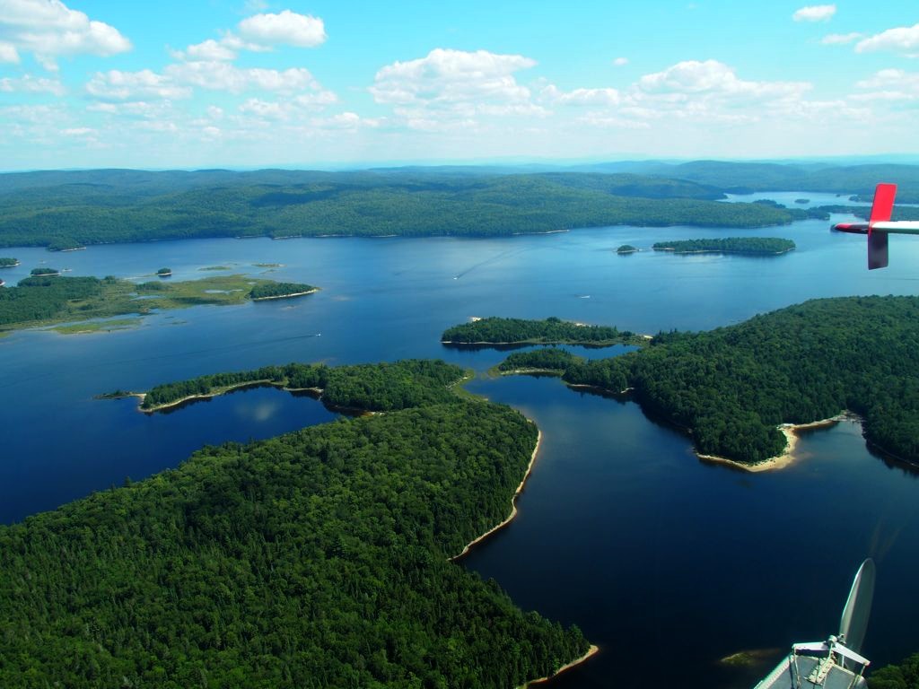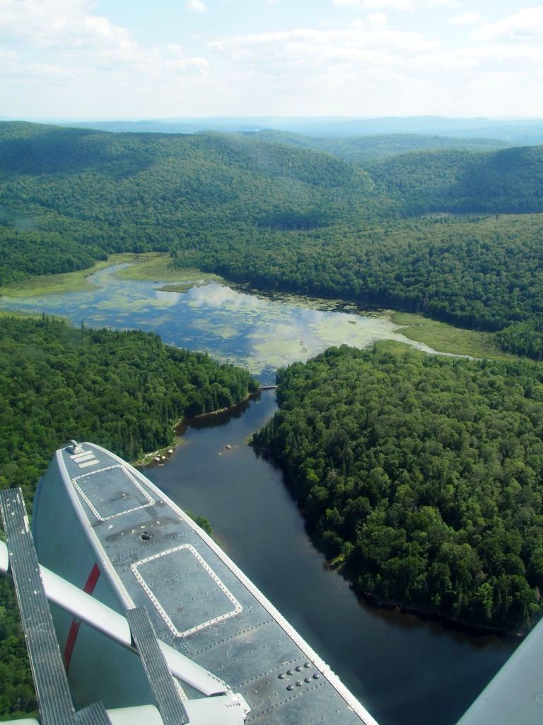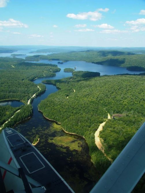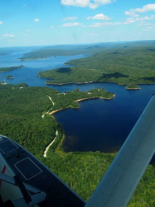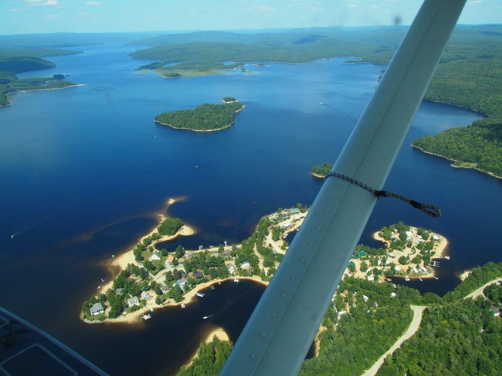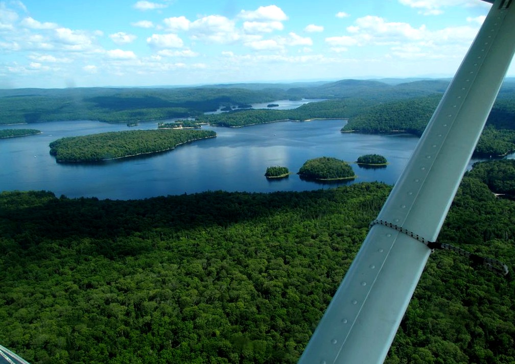 En plus, comme on vole assez bas, on en prend vraiment plein les yeux. Nous avons survolé l’ensemble du Réservoir Kiamika, et avec le grand soleil qu’il faisait ce jour-là, ce fut d’une beauté suprême. Nous avons survolé pendant 20 minutes des immenses forêts, et cet énorme lac parsemé de petites îles. C’est un des plus beaux paysages que j’ai pu voir !