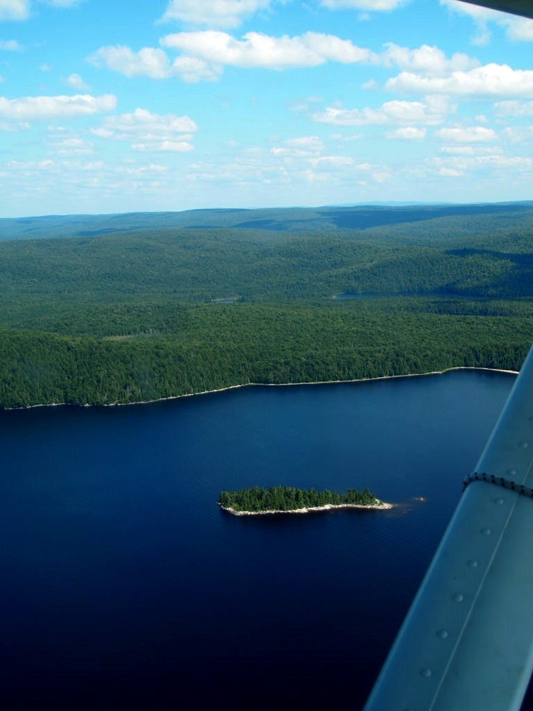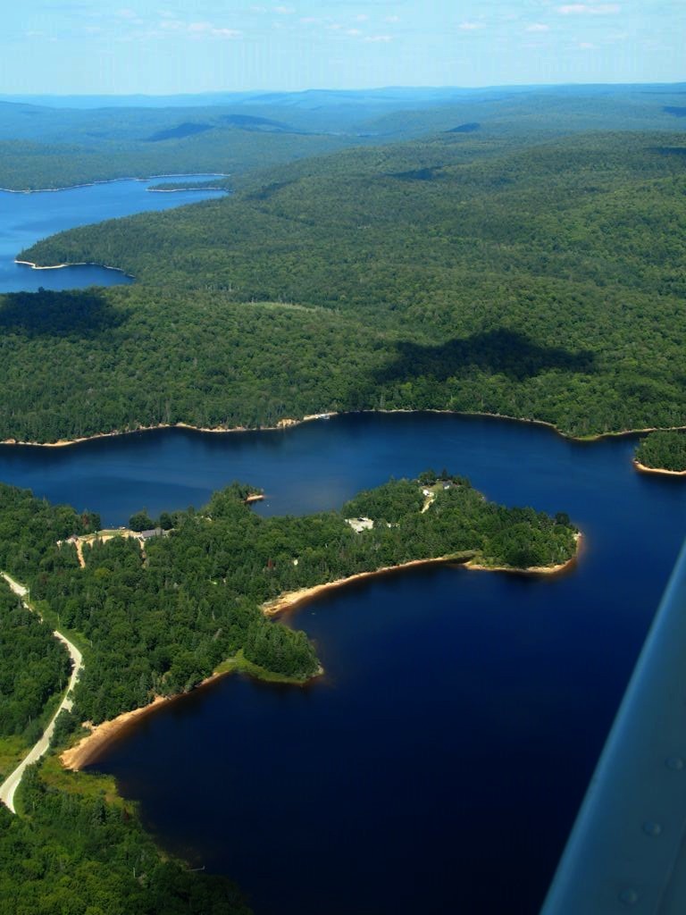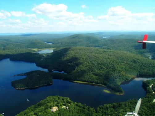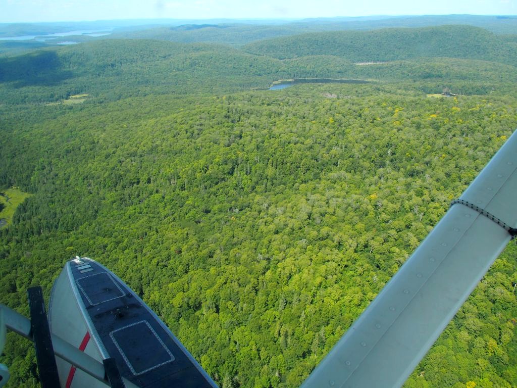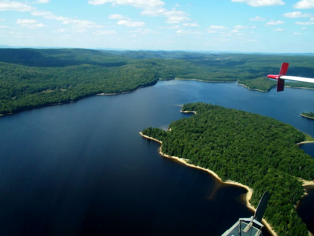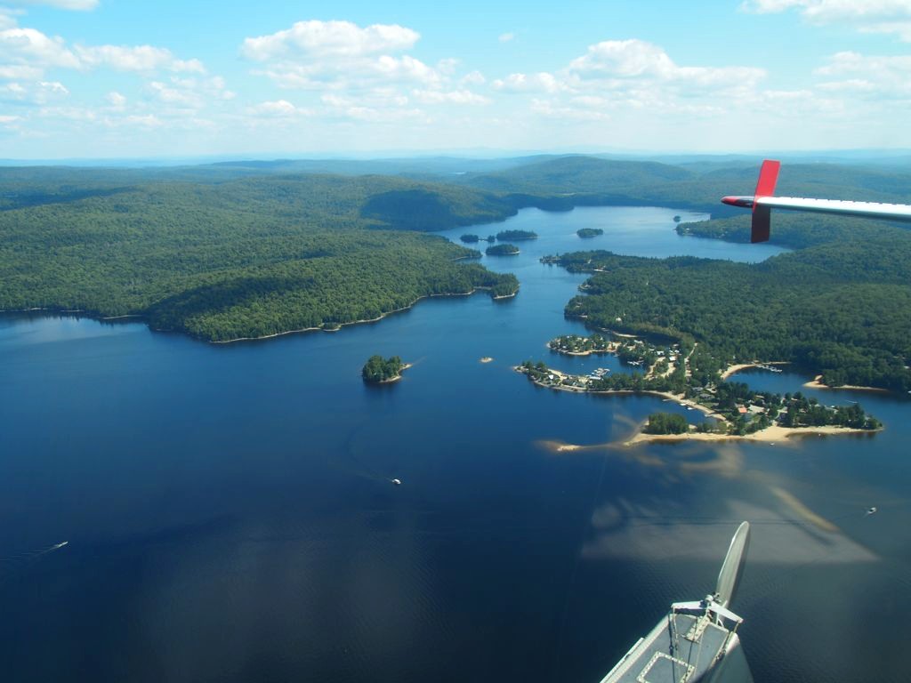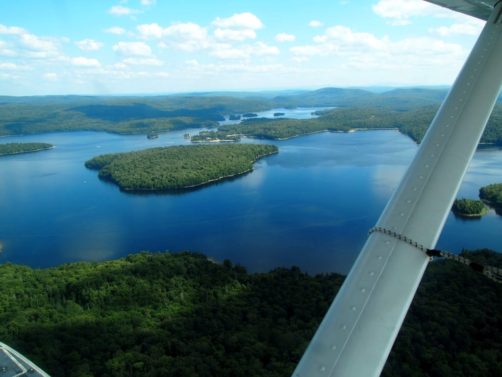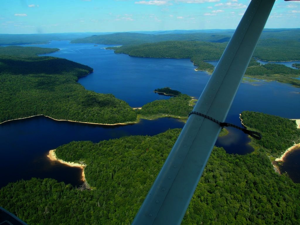 En plus, comme on vole assez bas, on en prend vraiment plein les yeux. Nous avons survolé l’ensemble du Réservoir Kiamika, et avec le grand soleil qu’il faisait ce jour-là, ce fut d’une beauté suprême. Nous avons survolé pendant 20 minutes des immenses forêts, et cet énorme lac parsemé de petites îles. C’est un des plus beaux paysages que j’ai pu voir !