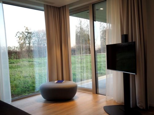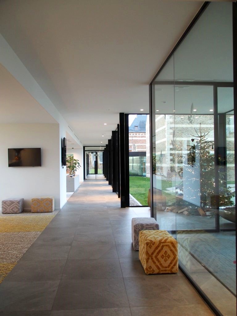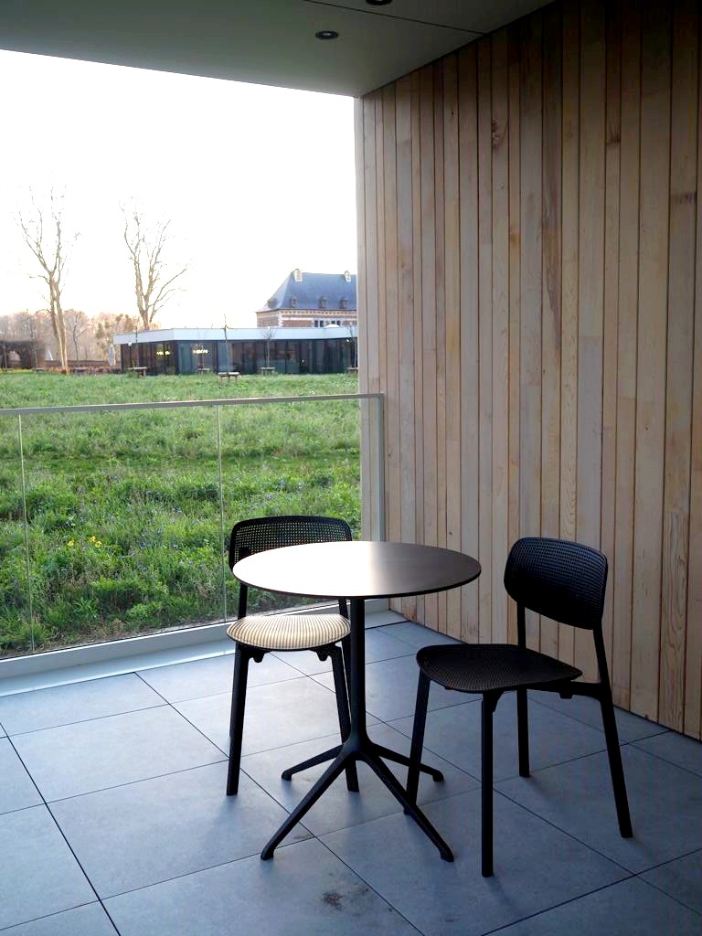 Le Martin’s Rentmeesterij s’est donc installé dans la Maison du Régisseur du domaine de la Commanderie d’Alden Biesen, un domaine historique datant du 13ème siècle. Une partie de l’hôtel (3 suites junior, le bar, les salles de réunion et de banquet) a été aménagée dans la partie historique, et le reste de l’hôtel (le reste des chambres, le centre de bien-être et le restaurant) s’est installé dans une annexe moderne mais parfaitement intégrée dans ce cadre historique.