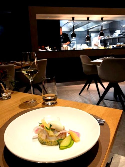 Ce que j’avais surtout hâte de découvrir, c’est le restaurant de l’hôtel, puisqu’à la tête de celui-ci se trouve un ex-Flanders Kitchen Rebel, le jeune chef Kevin Bonanno. Ce restaurant moderne, à la décoration d’inspiration scandinave, avec vue sur un jardin à l’anglaise et la partie historique de l’hôtel, propose une cuisine gastronomique de qualité.