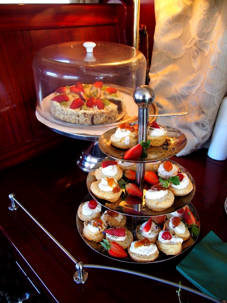 Nous passerons donc à nouveau l’heure de midi dans le train, et l’équipe nous a préparé des petits sandwichs et des gâteaux pour patienter.