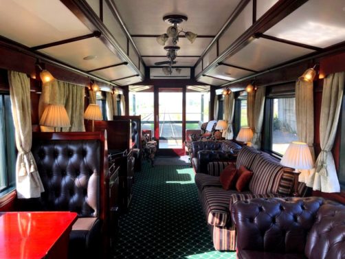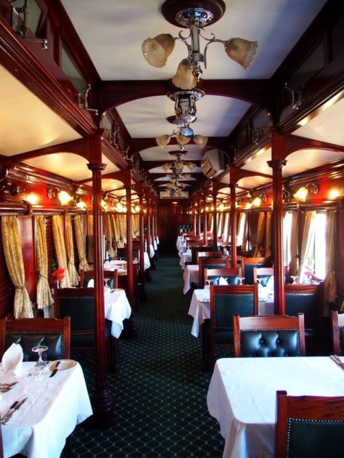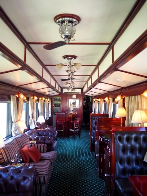 Les deux wagons avaient des décorations différentes, l’un dans le style années 10, et l’autre dans le style années 30. C’est dans ces wagons qu’on prend le petit-déjeuner (entre 7h et 10h), le lunch (à 13h) et le dîner (à 19h30). Pour le lunch et le dîner, une cloche sonne pour prévenir qu’il est l’heure d’aller manger.