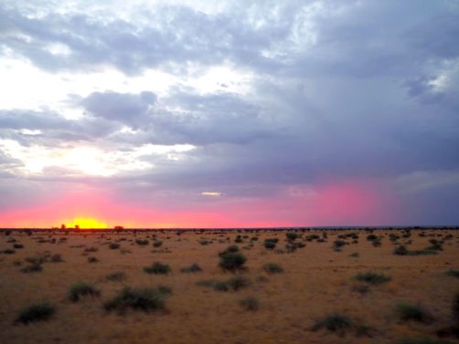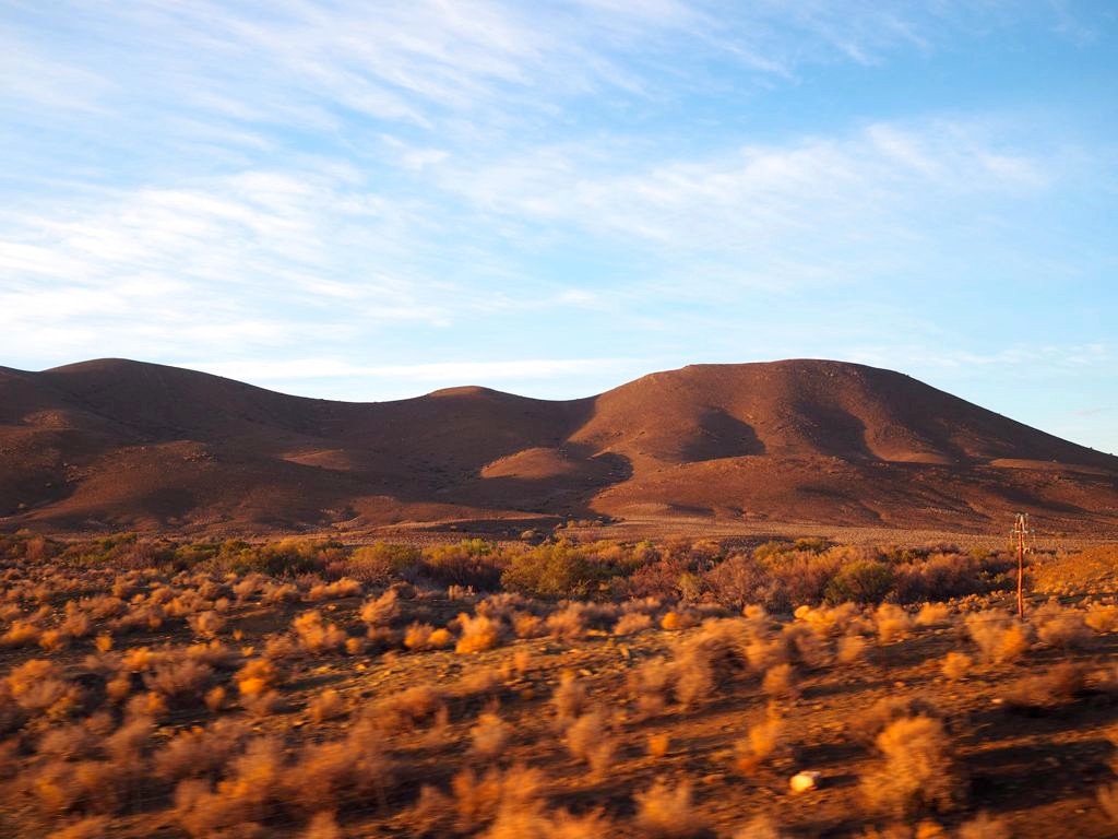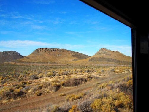 Nous nous sommes endormis face aux paysages désertiques du Karoo et nous nous levons… face aux mêmes paysages ! C’est assez fou.