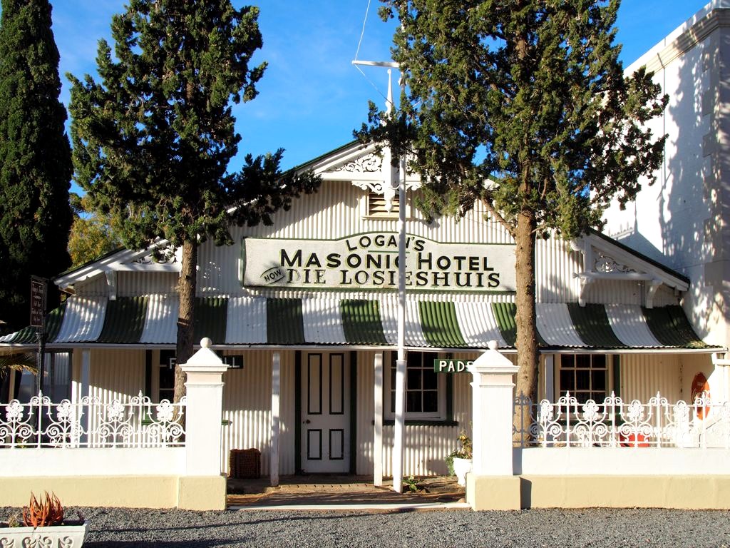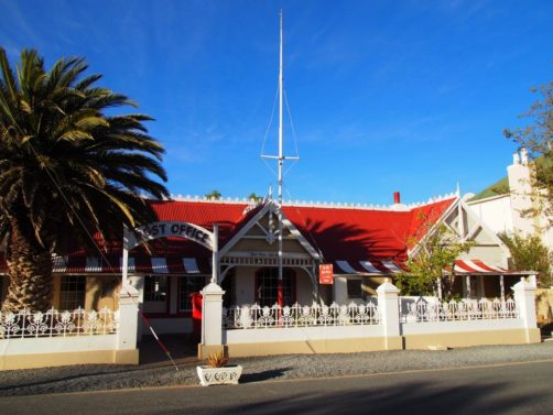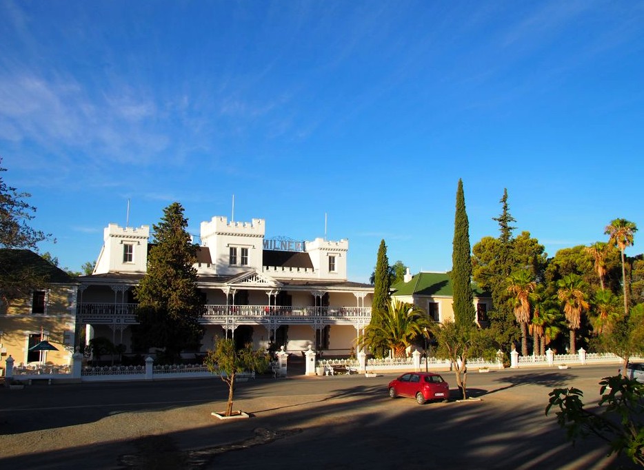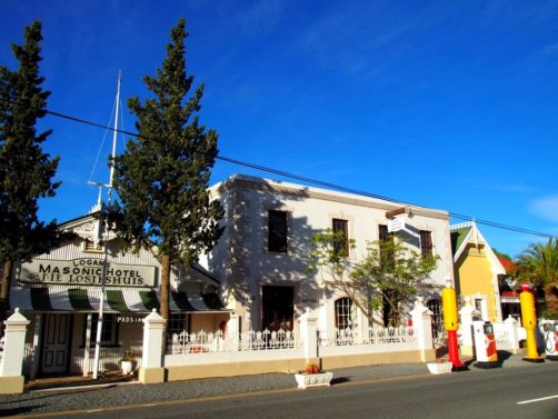 17h45. Nous voici arrivés à Matjiesfontein, notre première excursion ! Ce village historique de style Victorien est très petit (une rue !) mais aussi très charmant. A notre sortie du train, nous embarquons à bord d’un vieux bus anglais pour une visite express (10 minutes) de la ville, avec des commentaires plein d’humour.