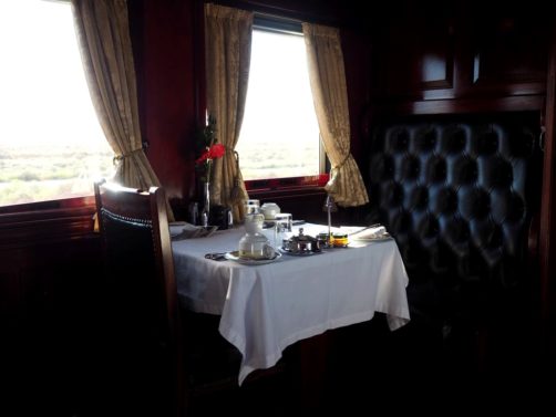 Pour vous donner une idée de prix (tarifs 2019), il faut compter environ 1300€ par personne pour la cabine la moins chère (« Pullman Suite ») sur le trajet (3 jours/2 nuits) que nous avons effectué, et environ 1950€ par personne pour une « Deluxe Suite » comme la nôtre. Les tarifs incluent toujours le logement sur base d’une cabine double, tous les repas et les boissons (alcool compris) à bord du train, et toutes les excursions. Ce tarif « tout compris » vous assure de ne devoir payer aucun supplément pendant votre voyage, vous pouvez prévoir votre budget à l’avance.