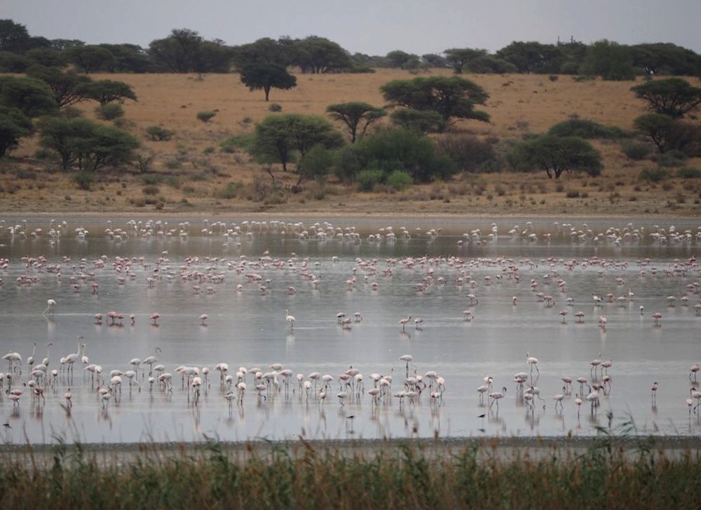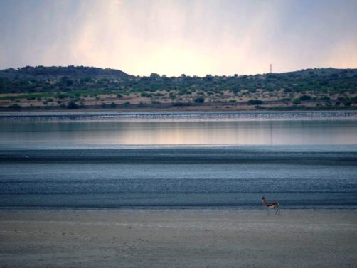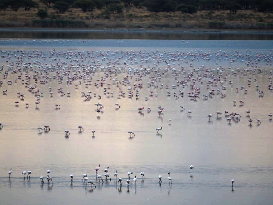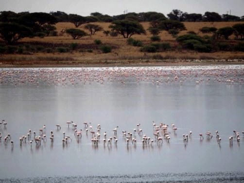 On nous avait prévenu que 10 minutes environ après le départ du train, nous allions passer à côté d’un lac avec une colonie de flamants roses (environ 23.000 !). Nous les avons bien vu, mais ils étaient quand même assez loin, un peu trop loin même pour mon télé-objectif…