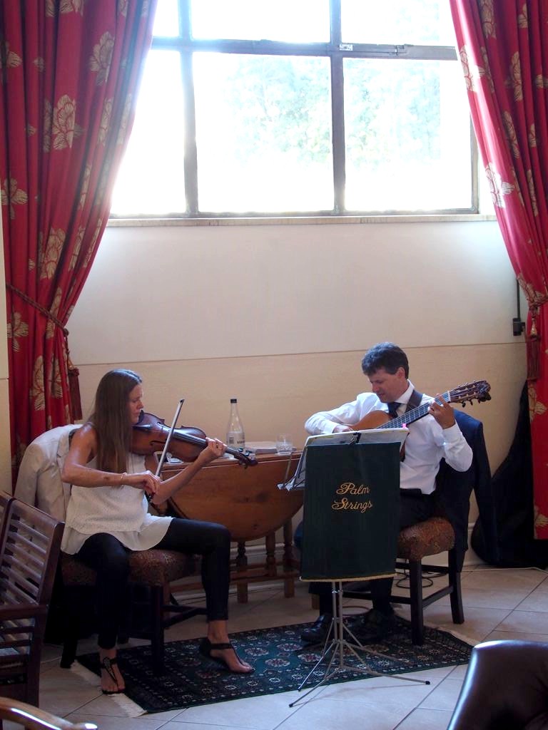 10h. Nous avions rendez-vous au numéro 1, Adderley Street, en face de la gare du Cap. C’est dans ce bâtiment grandiose que se déroule le « check-in« . Nos bagages sont pris en charge (nous les retrouverons directement dans notre chambre), et nous prenons place dans un grand salon, coupe de champagne (méthode Cap) à la main pendant qu’un duo nous joue du violon (des Beatles à Hotel California, toute une playlist de chansons populaires en version classique, j’ai adoré !). Avant d’embarquer, nous avons droit au briefing afin de nous expliquer comment va se passer le voyage.