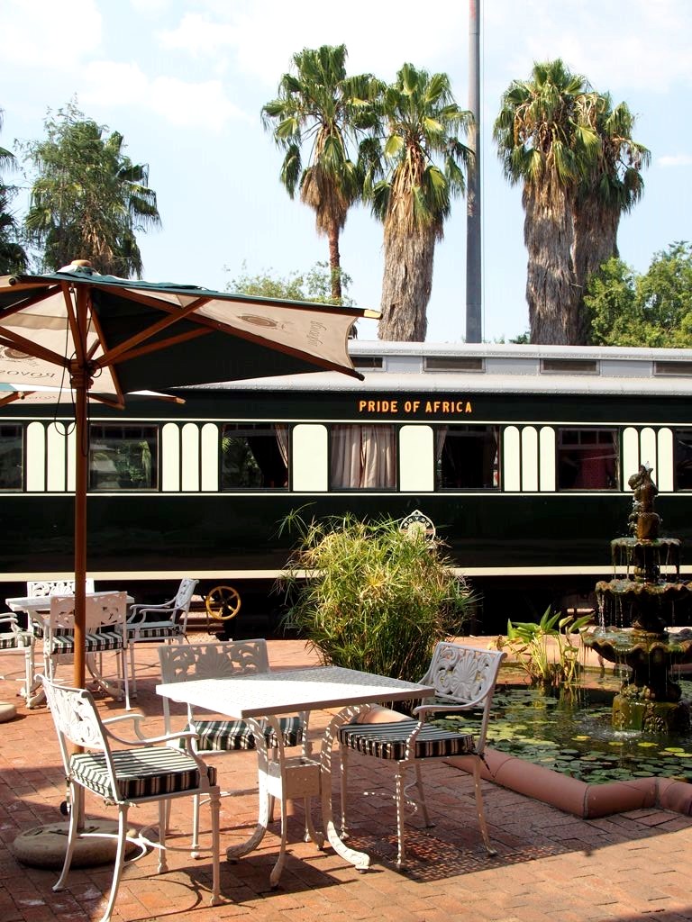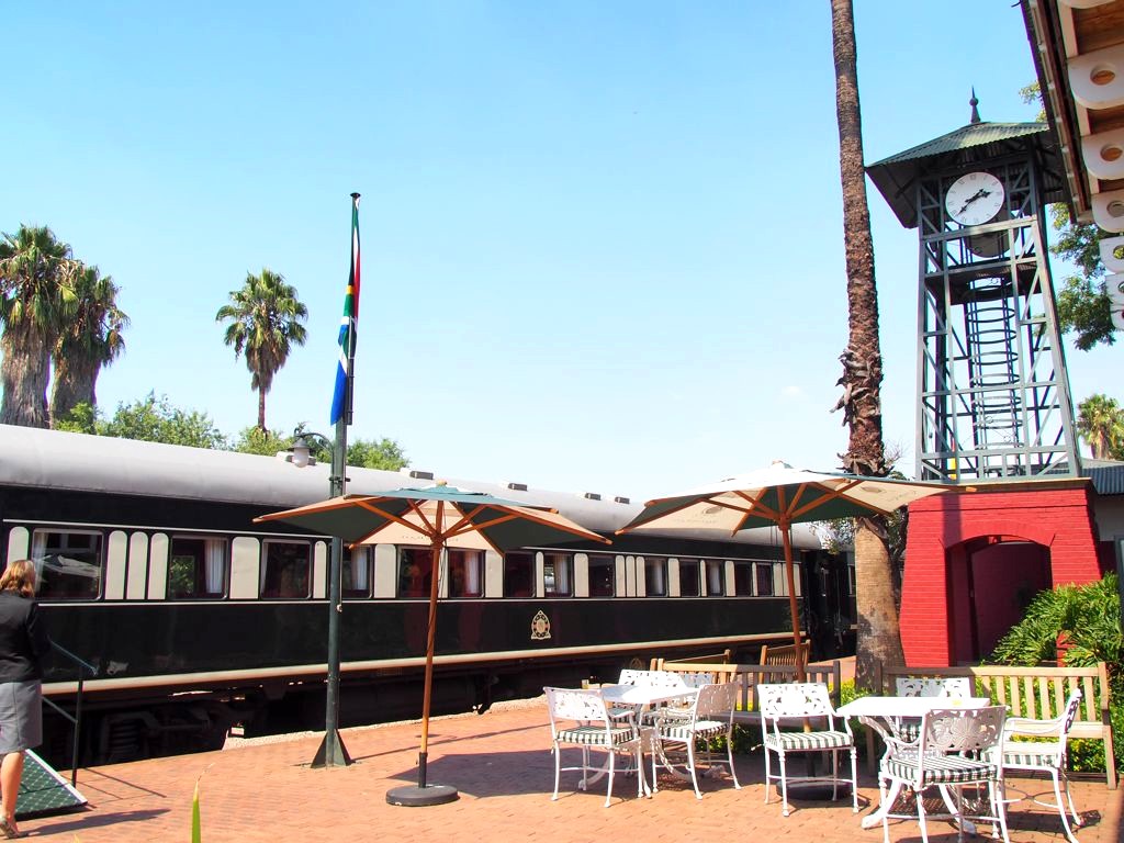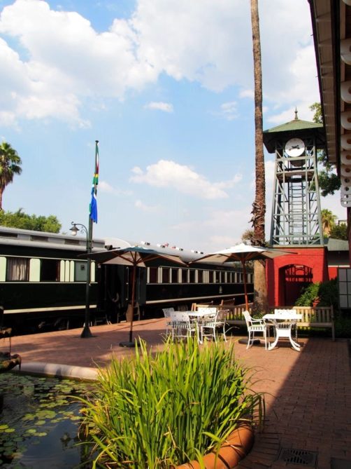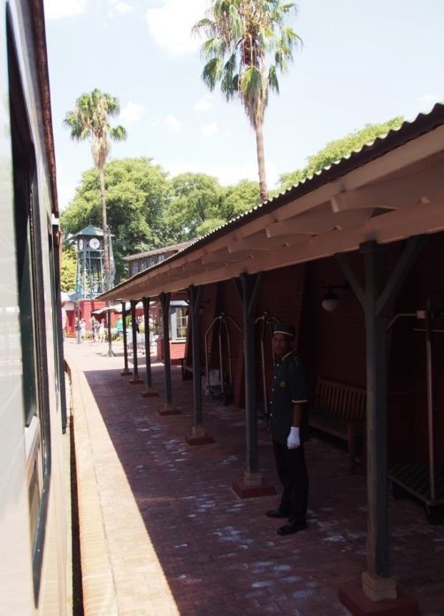 Rovos Rail dispose de sa propre gare privée à Pretoria. Juste avant notre arrivée, nous changeons de locomotive pour arriver en beauté avec une locomotive d’époque dans la gare datant des années 1910.