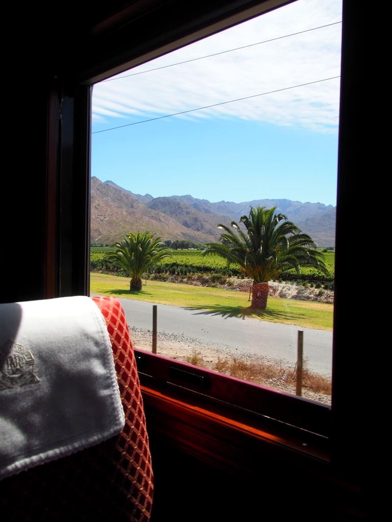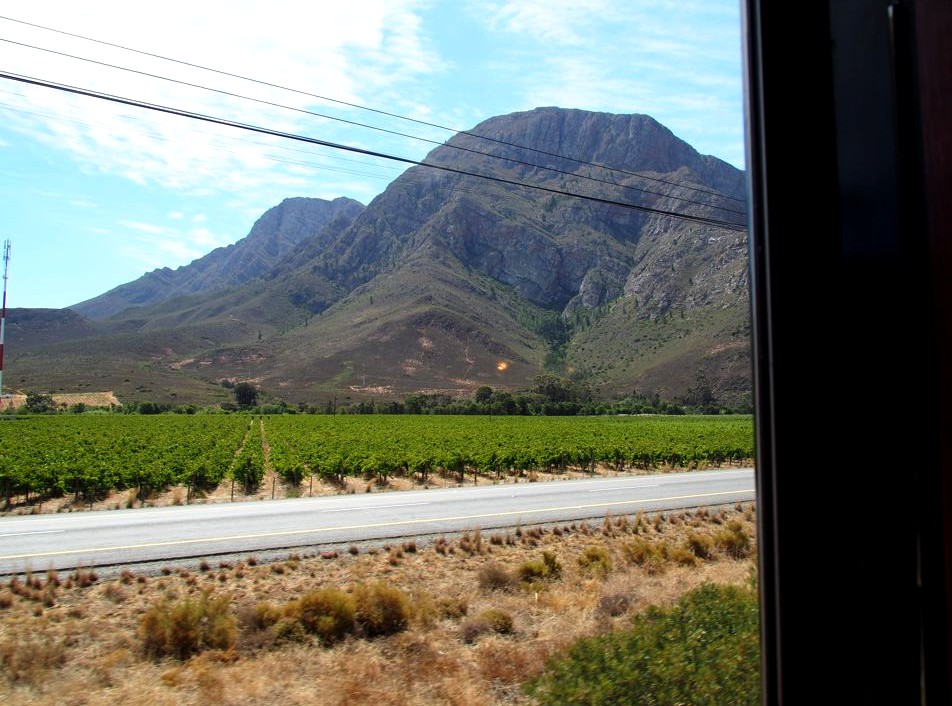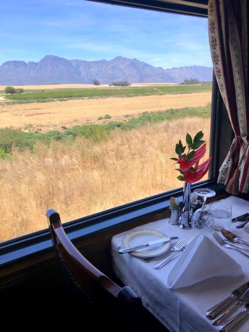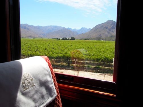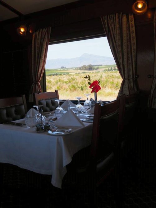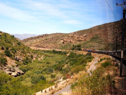 13h. La cloche retentit, il est l’heure de prendre la direction du wagon-restaurant pour le lunch. Quelle expérience de pouvoir profiter d’un bon repas tout en admirant les vignobles de la région du Cap. Les paysages deviennent vite grandioses.