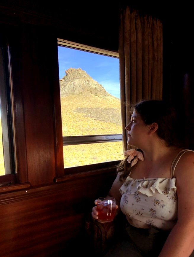 A l’arrière du train se trouvait donc le wagon d’observation, mon wagon préféré. Celui-ci avait un petit espace extérieur (des bancs pour prendre l’air tout en observant le paysage) et à l’intérieur se trouvait un espace salon très confortable et le premier bar. C’est là que nous avons passé l’essentiel de notre temps, tout d’abord parce que c’est le meilleur endroit pour profiter de la vue, mais aussi car le personnel qui y travaillait était particulièrement adorable.