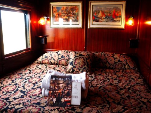 - Les échanges avec les autres passagers : on m’a posé la question de la différence d’âge avec la plupart des passagers du train (il y a en effet de nombreux retraités, et on les comprend !) : ça ne nous a posé aucun problème. Nous étions tous des passionnés de voyages, et beaucoup avaient déjà voyagé plusieurs fois en train de luxe (quand je vous dis que ça rend accro !). Nous avons donc eu des conversations très intéressantes ! On notera également que les enfants de 0 à 2 ans ne sont pas autorisés à bord du train, mais après cet âge les enfants le sont, à condition d’être calmes. Nous étions les plus jeunes à bord de ce train, je ne peux donc pas vous dire si le trajet est véritablement adapté aux enfants. Dans tous les cas, toutes les cabines sont doubles dans le train (ce qui limite l’accessibilité aux familles).