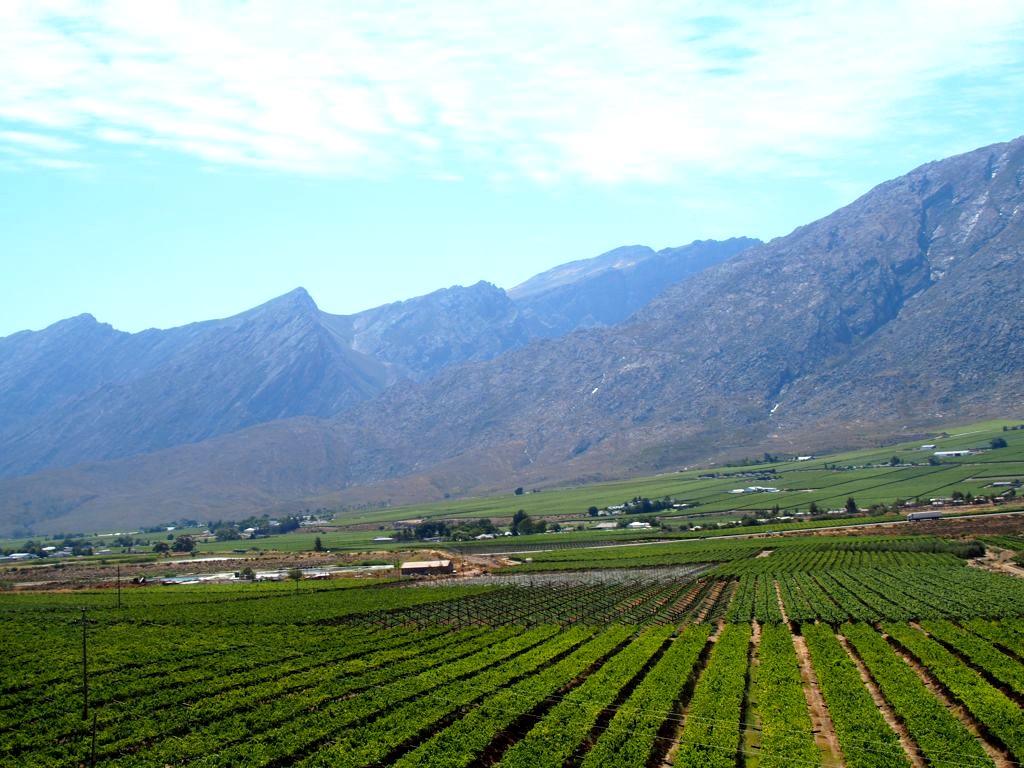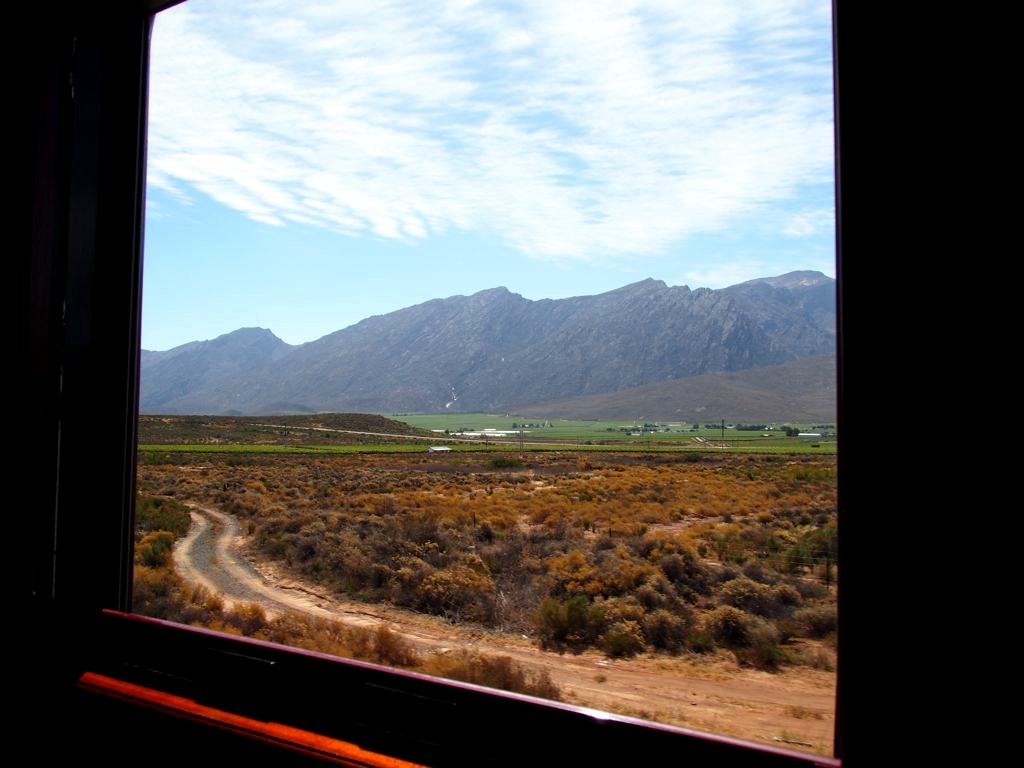 15h. Le train arrive à Worcester dans la Hex River Valley, avant de monter d’environ 750 mètres. Dans la vallée de la Hex River, face aux montagnes, se trouvent pas moins de 175 vignobles qui produisent l’essentiel du vin destiné à l’exporation. A 15h30, nous passons une série de 4 tunnels afin de traverser les montagnes.