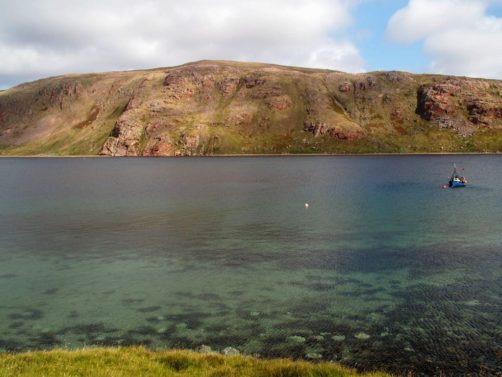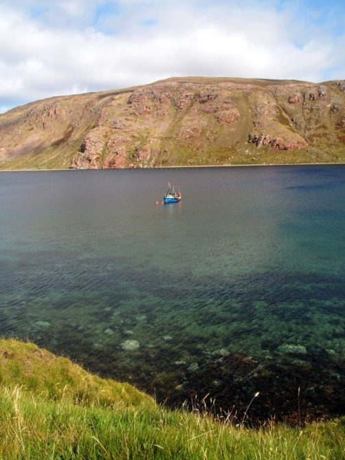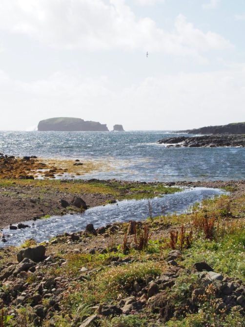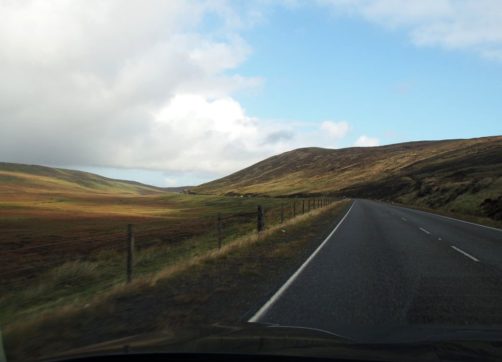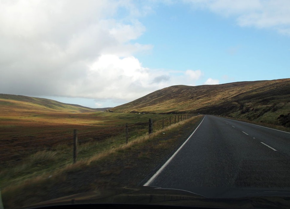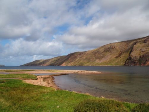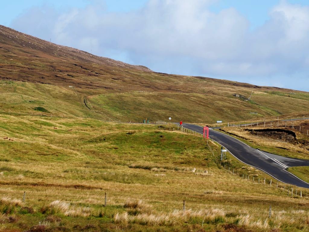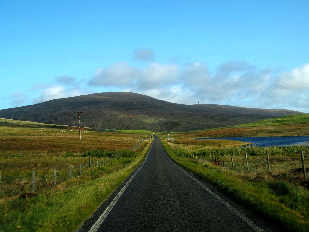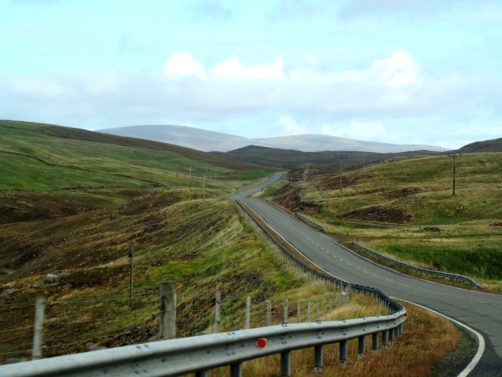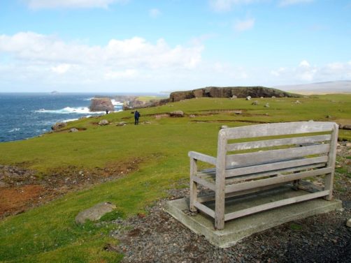 La route pour arriver à notre premier arrêt est, encore une fois, splendide. En traversant la fine bande de terre reliant Northmavine au reste de Mainland, on se trouve entre la Mer du Nord d’un côté et l’Atlantique de l’autre.