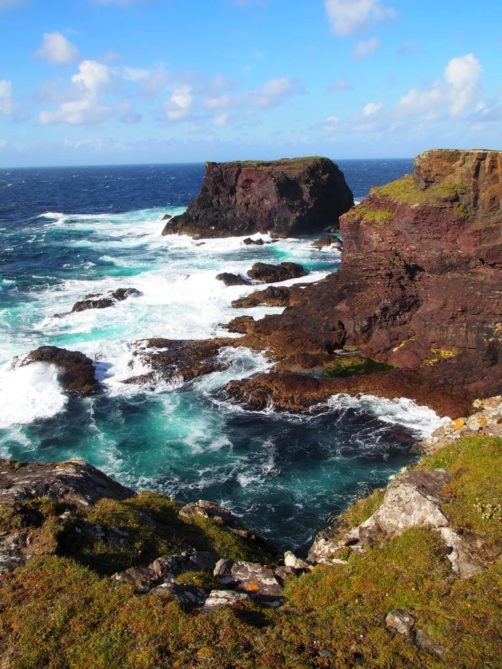 Le clou du spectacle nous attendait à la fin de la route : Eshaness, un des endroits les plus fréquentés par les touristes aux Shetland, et on comprend très vite pourquoi ! Les falaises d’Eshaness sont d’une beauté sauvage… Le coup de cœur est immédiat.