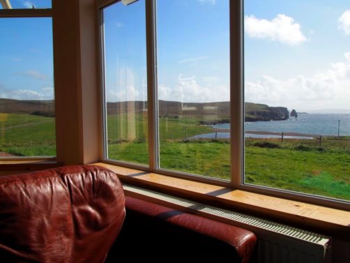 Mais le spectacle ne faisait seulement que commencer. Nous faisons à présent route vers l’ouest de la péninsule de Northmavine, où se trouve Eshaness. En chemin, nous nous arrêtons au Braewick Café, pour un petit scone et un thé bien mérités avec vue sur les falaises et l’océan. Il y a aussi quelques hébergements de glamping ici, pour admirer les aurores boréales ça a l’air plutôt sympa !