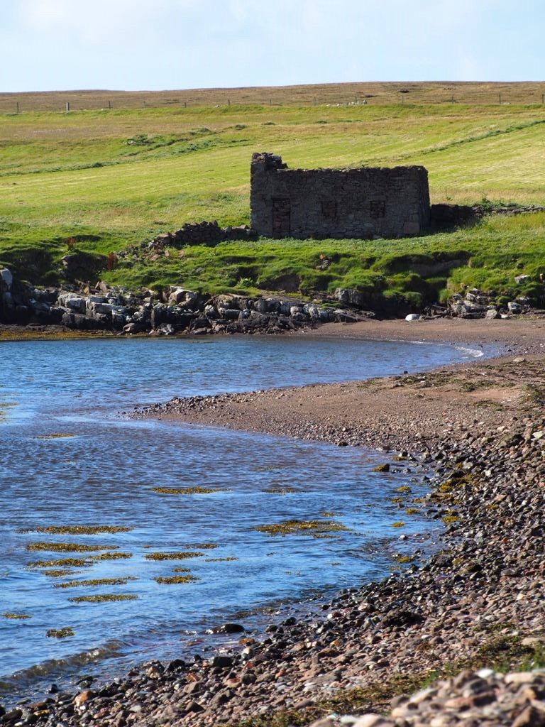 Les habitants des Shetland semblent avoir une passion pour les petits musées locaux remplis de brique-à-braque. Le musée de Tangwick Haa est l’un de ceux-là ! Les moultes objets récoltés attestent d’un temps révolu, et nous en apprennent quand même beaucoup sur l’histoire des Sheltand ainsi que sur les us et coutumes de ses habitants. Le temps que le car de touriste qui a réussi à aller jusque-là s’en aille (première fois qu’on en croise un ici !), on fait également un petit tour sur la plage voisine…