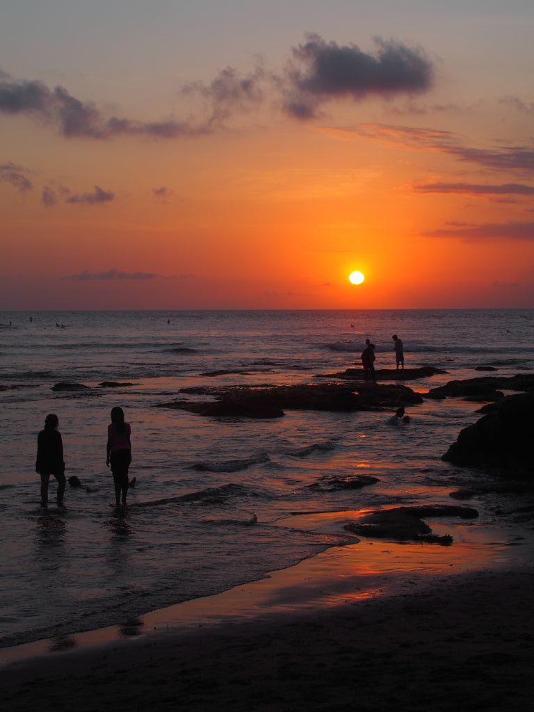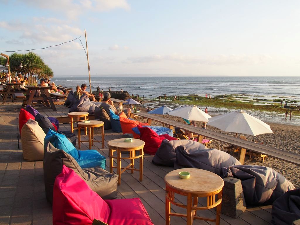 Lors de mon premier voyage à Bali, Canggu (qui se trouve plus à l’ouest) était vraiment une petite ville dont on ne parlait pas beaucoup. En quelques années, les hôtels et restaurants ont poussé et je dois dire que l’atmosphère est totalement différente de Kuta : j’ai beaucoup aimé l’ambiance qu’il y a, notamment au coucher de soleil dans les bars le long de la plage avec la musique live, quelques surfeurs,… C’est plutôt bien posé ! On y mange aussi très très bien.