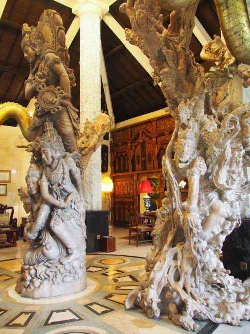 J’ai vraiment adoré le Ayung Resort Ubud, dont je vous parlais déjà dans mon précédent article. En plus d’avoir un des restos où j’ai le mieux mangé à Bali, cet hôtel de luxe – au style un peu kitsch mais que j’aime tellement – a vraiment tout pour plaire. Sa situation paradisiaque en pleine nature est parfaite, tout comme son service et ses infrastructures. Ils ont même une réplique miniature de Borobudur et une série impressionnantes de sculptures dans la roche !