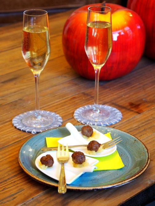 À notre arrivée, nous avons été accueillis très chaleureusement avec des produits locaux : un verre de mousseux de la région (délicieux) accompagné de boulettes au sirop de Borgloon. Un bel aperçu de toutes les spécialités que la région a à offrir !