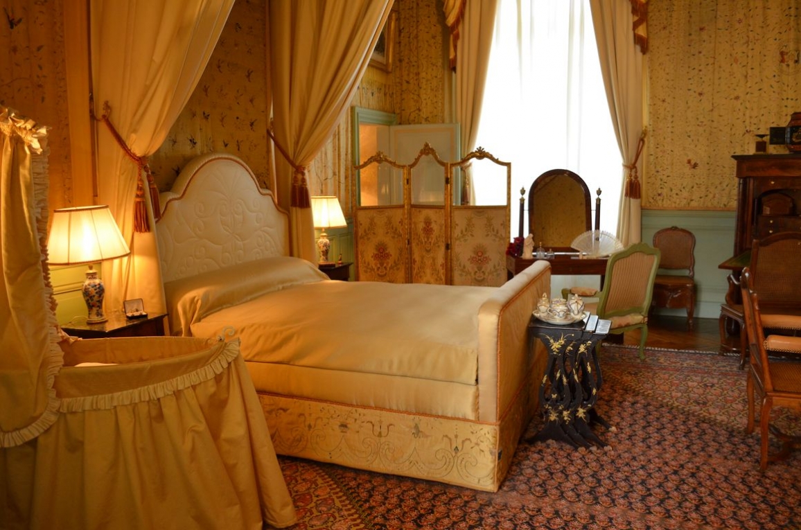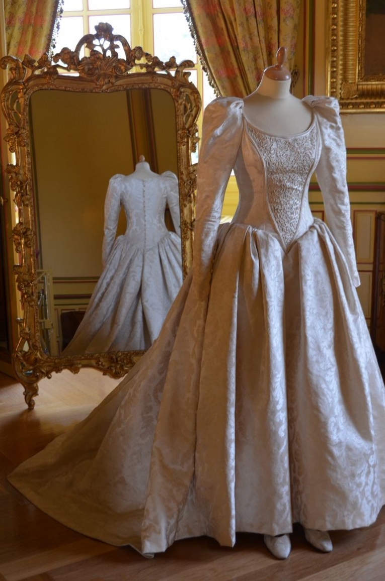 Dans la chambre des mariés, on trouve la robe de mariée de l’actuelle propriétaire du château, qui s’est mariée en 1994 ici même !