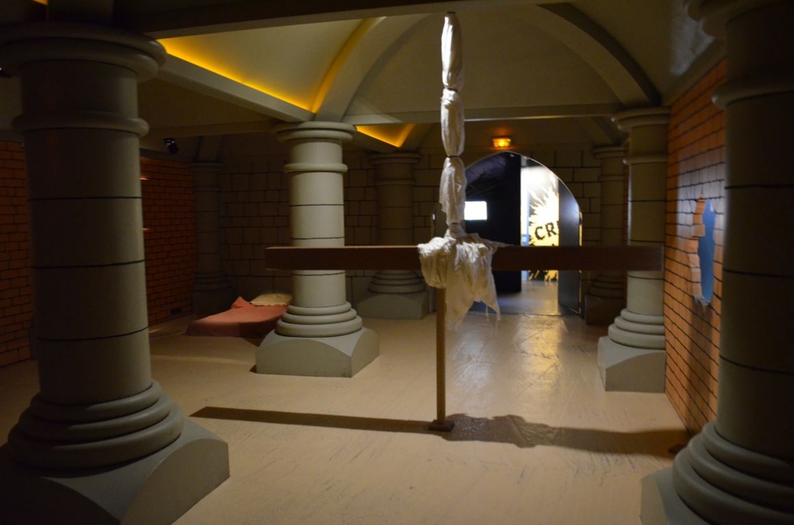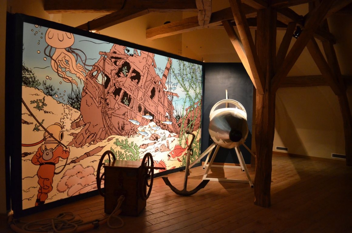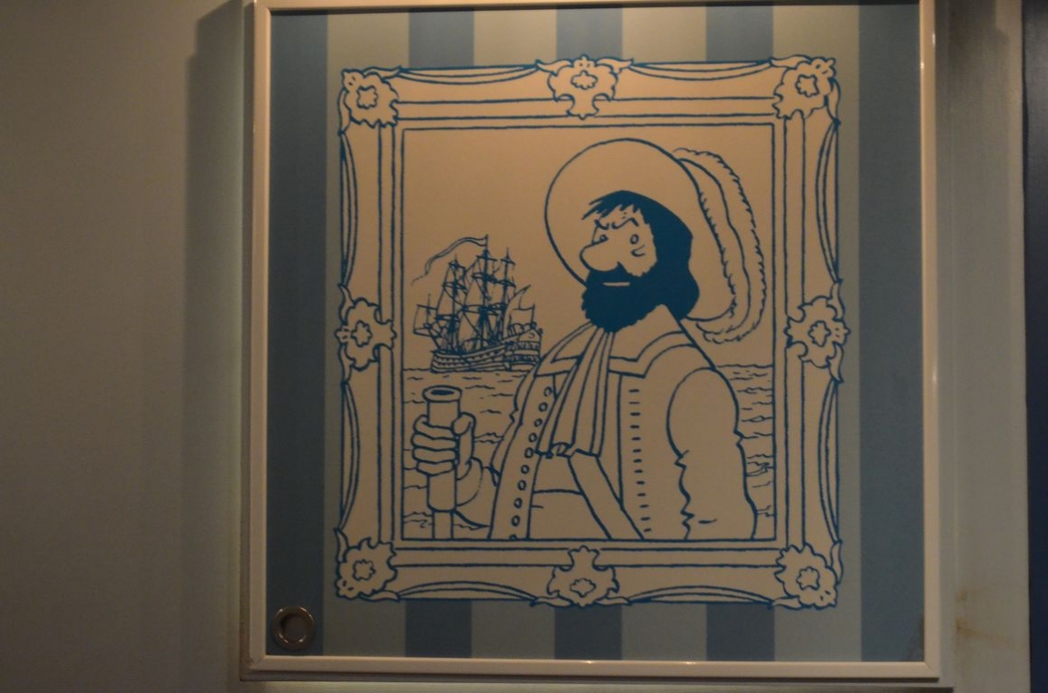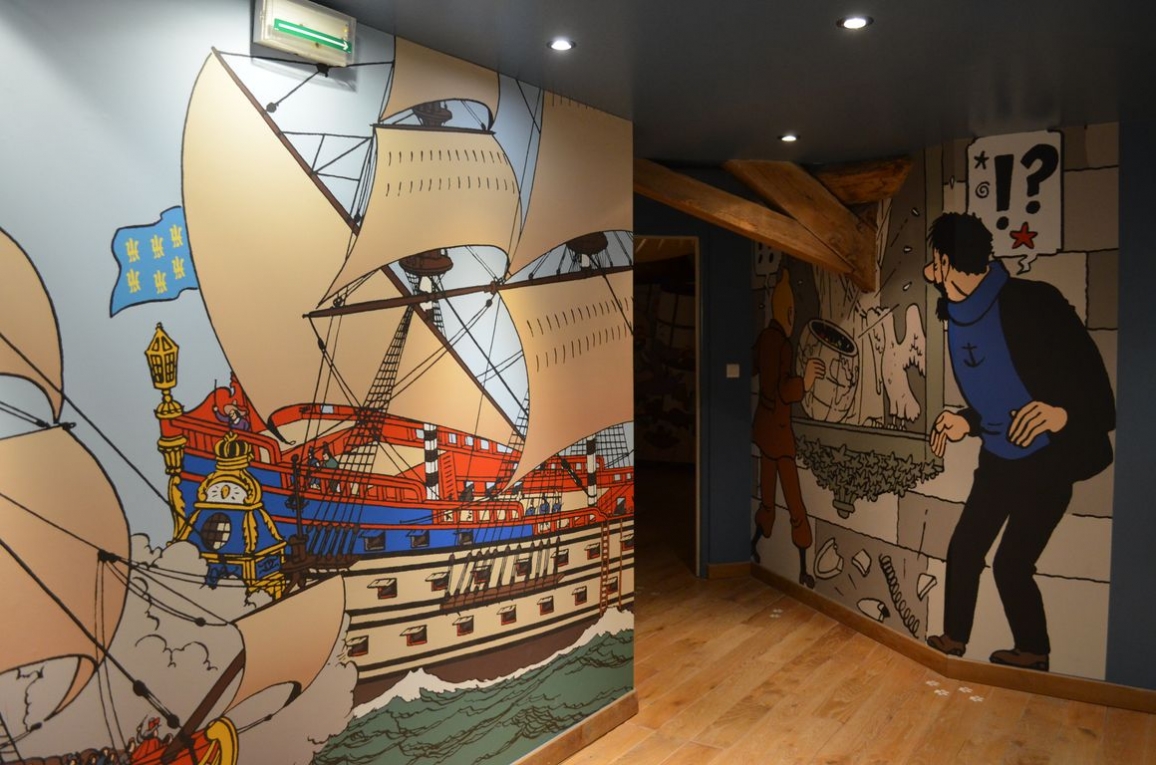 Après une salle d’introduction, la première salle que l’on visite est consacrée à la crypte, que l’on retrouve dans « Le Secret de la Licorne » et « Le Trésor de Rackham Le Rouge »… et où Tintin retrouve finalement le fameux trésor.