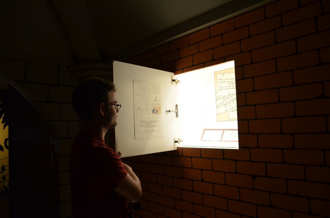 La visite se veut interactive, on doit donc chercher dans chaque salle des « fenêtres » cachées où l’on retrouve quelques objets, manuscrits, etc. liés à la pièce ou à l’univers de Tintin en général.