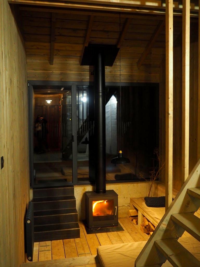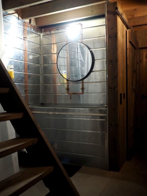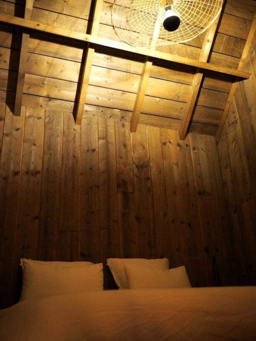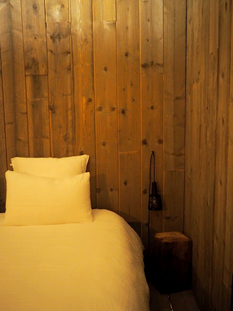 Avant de découvrir la cuisine du chef, nous prenons d’abord possession de notre chambre (100€ la nuit avec petit-déjeuner), fraîchement rénovée, tout comme le reste de l’auberge d’ailleurs. On sent encore l’odeur de neuf, nous devons être parmi les premiers à y dormir. Les nouvelles chambres, très tendance, utilisent les matériaux bruts, voir recyclés (comme la lampe de couveuse dans les toilettes, idée géniale !). Le bois s’accompagne de quelques éléments en métal et en béton.
