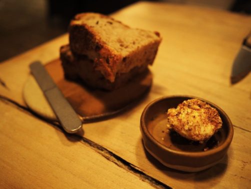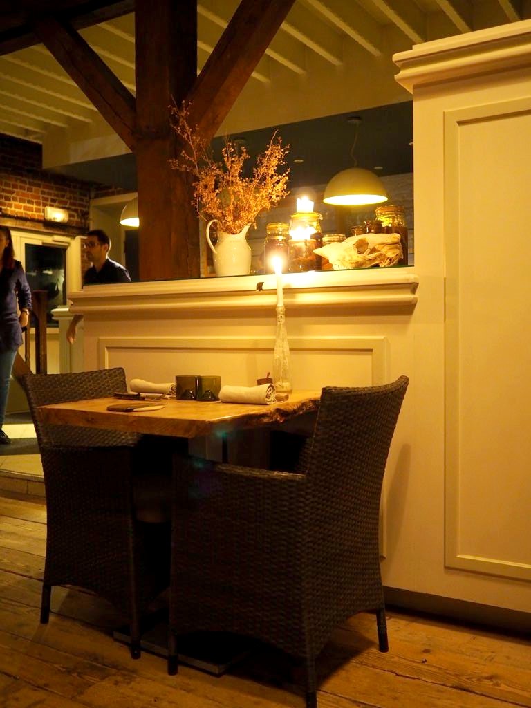 Mais ce qu’on attendait le plus, c’était de découvrir la cuisine de Florent Ladeyn ! Côté restaurant, le bois est à nouveau hyper présent, créant une ambiance cosy, tamisée en soirée. La salle est bien spacieuse, permettant de profiter de son repas malgré le monde.