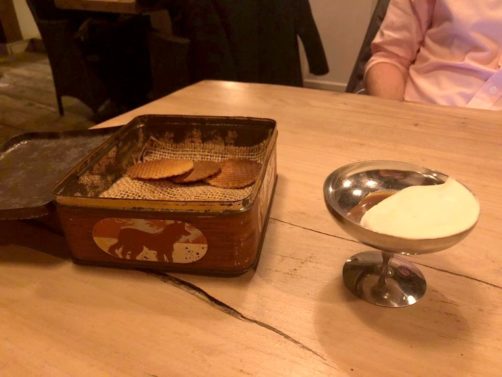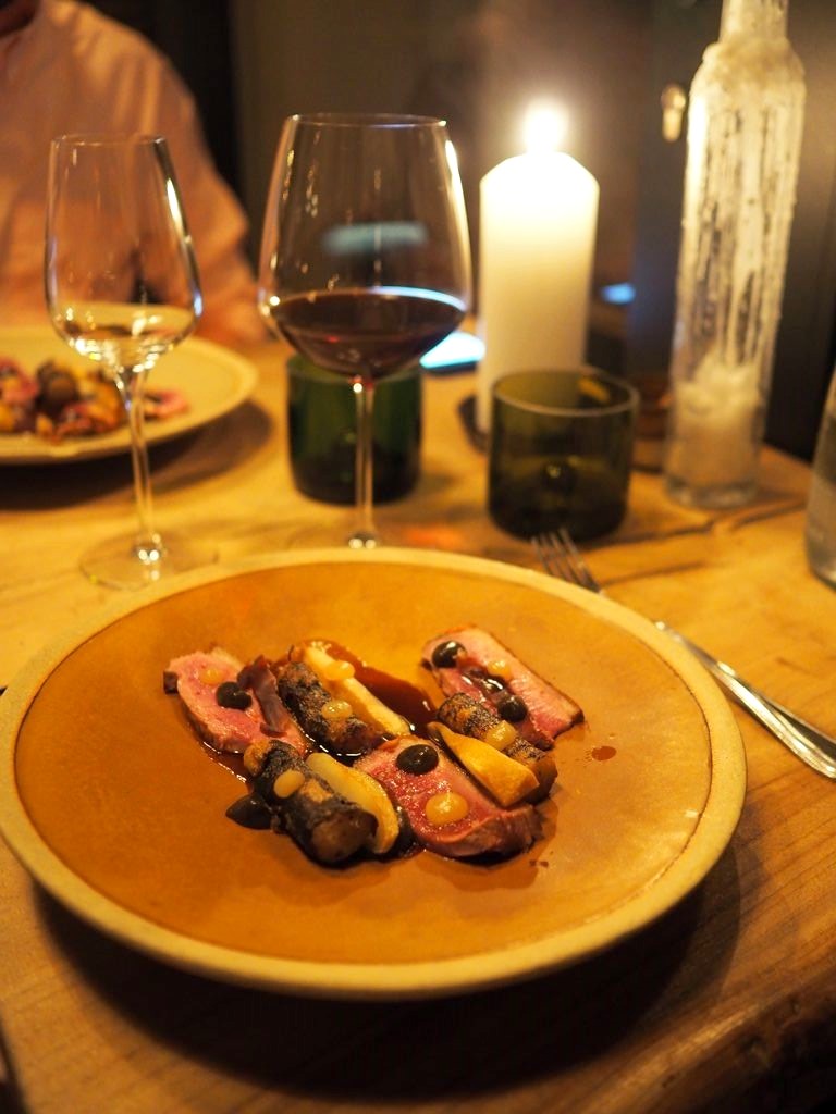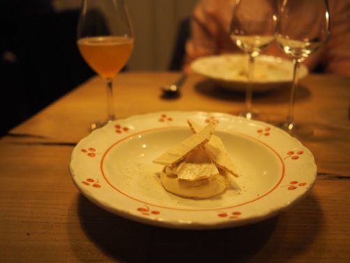 Puisque le restaurant privilégie les produits du marché, bien évidemment, le restaurant propose tous les jours un menu unique. Il faut juste choisir entre la petite version du menu (40€) ou la grande (60€), on ne sait même pas à l’avance que qu’on va manger, ni même le nombre de services qu’il y aura (je suppose que, ça aussi, ça varie en fonction des produits !). J’ai vu ça plutôt comme une manière de demander aux clients d’être ouverts d’esprit et de profiter du repas sans se soucier de rien, rien d’élitiste, vraiment.