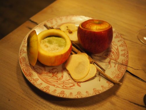 En dessert, j’ai beaucoup aimé le « tout pomme », travaillant toutes les parties de la pomme, en plusieurs textures, associée à de l’oseille.