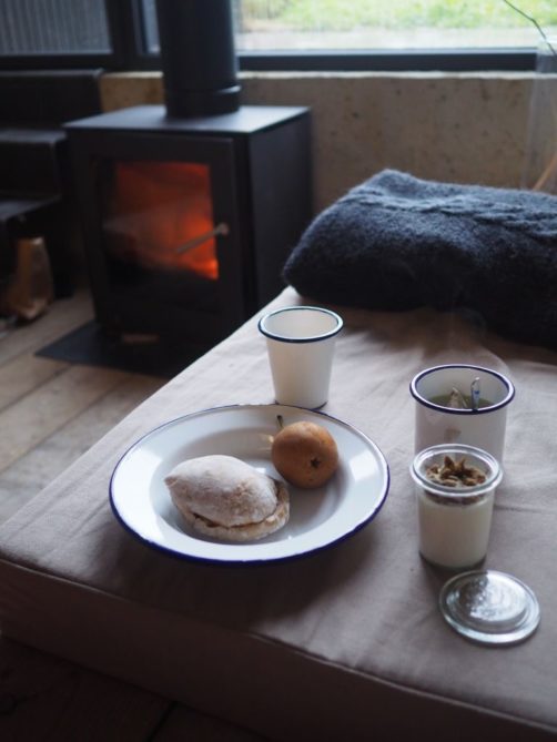 Et puisque le local est si important dans la cuisine de Florent Ladeyn, il fallait bien qu’il le soit tout autant côté chambres. Le matin, c’est un petit-déjeuner ultra local qui nous est donc déposé devant notre porte : pas de café mais des tisanes ou de la chicorée, pommes, pain et pâté maison (faut quand même être bien réveillé pour ça !).