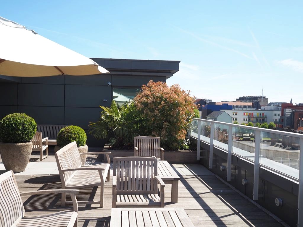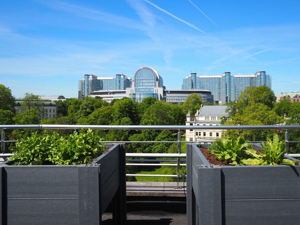 Cerise sur le gâteau, Jean-Philippe Watteyne a pu installer son petit potager sur les toits du Sofitel ! Ses plantes aromatiques viennent donc rejoindre les ruches qui s’y trouvaient déjà depuis plusieurs années. J’ai eu la chance de pouvoir passer en coulisses pour aller y faire un tour : la vue sur le Parc Léopold et le quartier européen est imprenable.