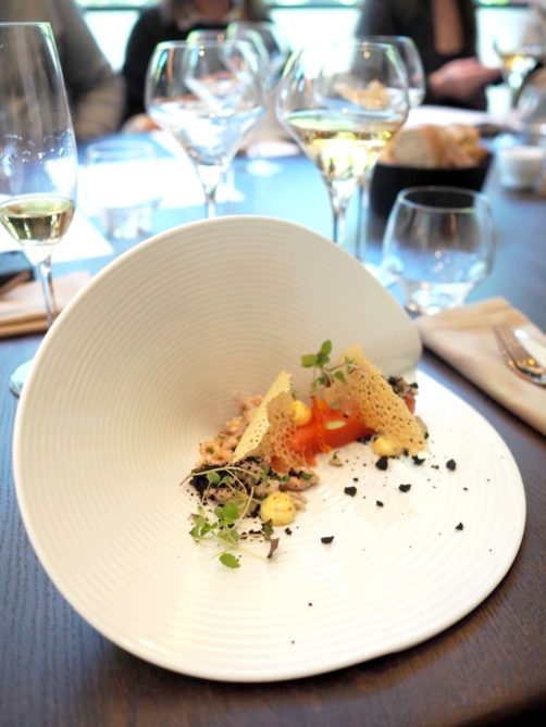 En entrée, on reconnaît facilement la touche de Jean-Phi dans les « tomates crevettes by Jean-Phi », sa version revisitée d’un grand classique de la cuisine belge. Pour ce plat, le chef utilise des tomates en gelée récoltées l’été passé, des crevettes grises de la Mer du Nord, chips de peau de tomates et mayonnaise. Y a pas à dire, ça change de la version classique !