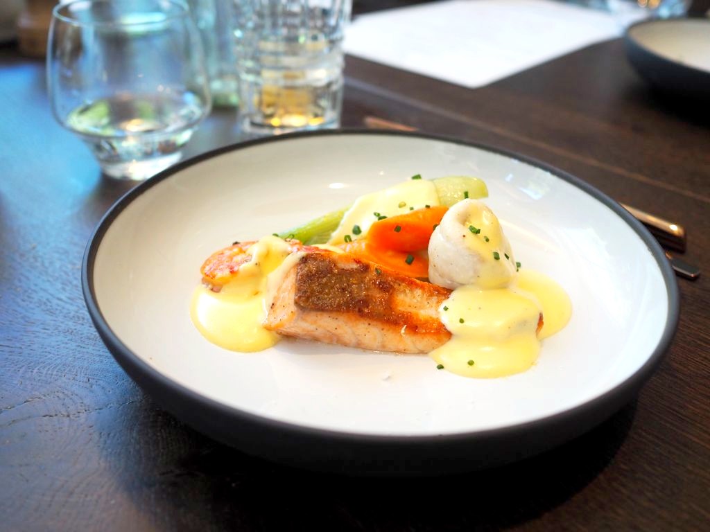 J’ai également goûté à deux autres plats actuellement à la carte, avec tout d’abord le Waterzooi de poissons by Jean-Phi, une version à nouveau moderne du traditionnel waterzooi avec du saumon mi-cuit, des gambas, une roulade de plie et une sauce hollandaise à la blanche.