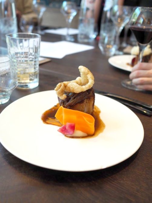 Si le waterzooi était déjà bien bien gourmand, la poitrine de cocho confite (céleri rave, pickles de légumes et sauce à l’échalote) l’est encore plus ! Un vrai régal.
