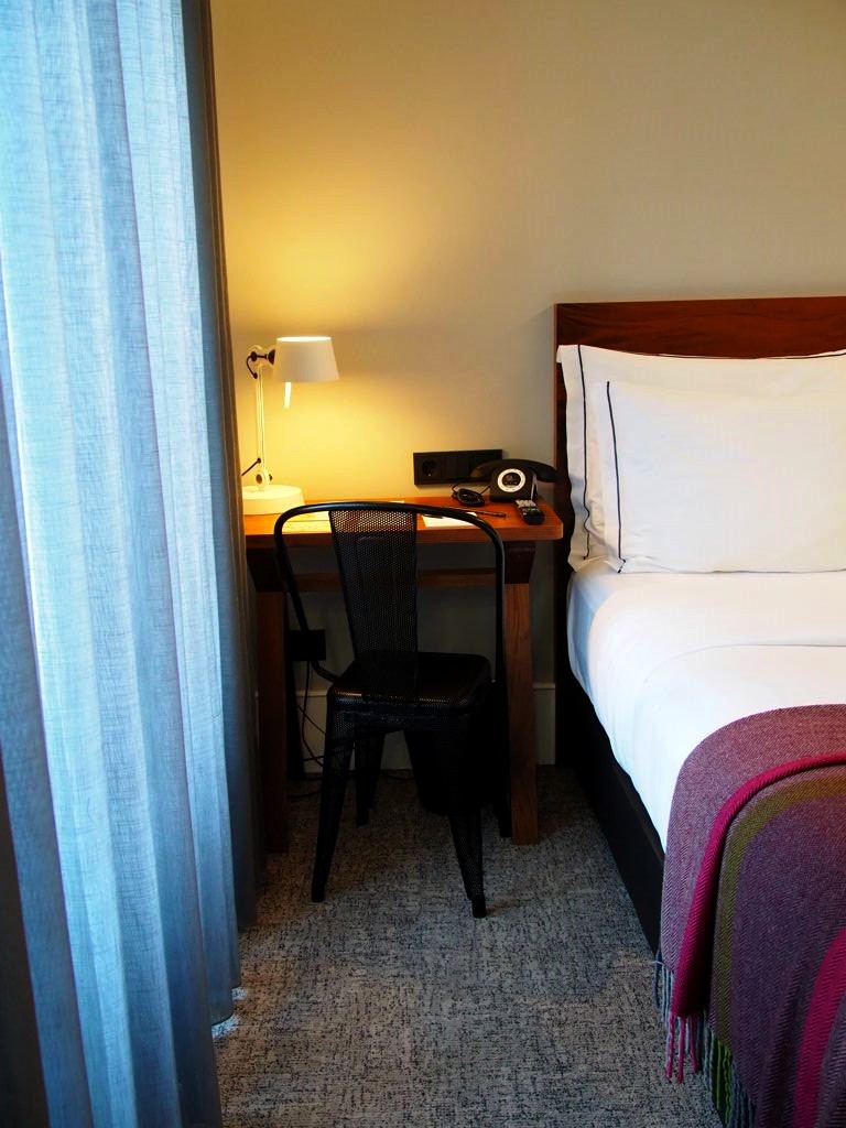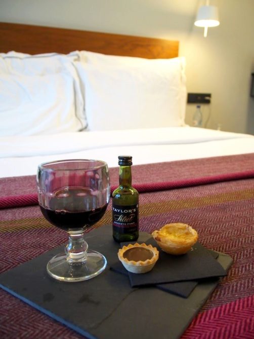 Les chambres sont quant à elles très lumineuses, et assez spacieuses pour Lisbonne. Le lit est particulièrement confortable et j’ai beaucoup apprécié la petite bouteille de Porto et le pasteis en guise de bienvenue. Ma chambre donnait sur l’avenue, et je pouvais un peu entendre la circulation, même si ça ne m’a pas gênée plus que ça.