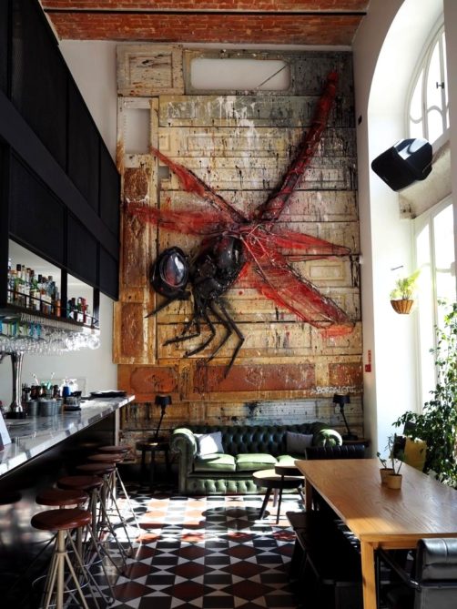 Mais venons-en au plus important : l’hôtel ! Situé dans un sublime bâtiment Art Nouveau superbement rénové et datant de 1908, comme son nom l’indique, le 1908 Lisboa Hotel est un nouvel hôtel 4 étoiles conçu par l’architecte Adães Bermudes. L’art contemporain est au cœur de la décoration intérieure de l’endroit, et on y retrouve notamment deux œuvres du street artist portugais le plus connu, Bordalo II, qui crée des sculptures d’animaux à partir de déchets.
