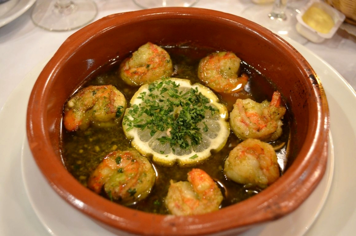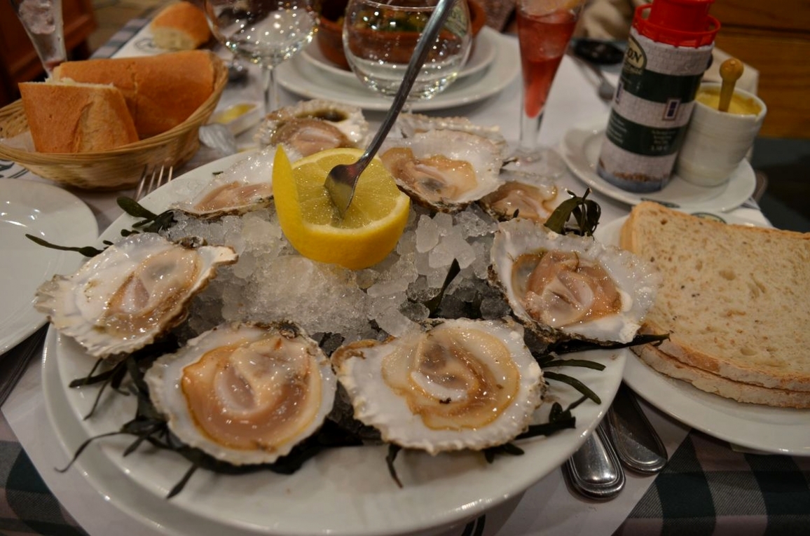 Comme entrée, le choix de Fred s’était porté sur une assiettes d’huîtres plates du jour, bien fraîches, et moi j’avais choisi une cassolette de scampis à l’ail, classique et bon !